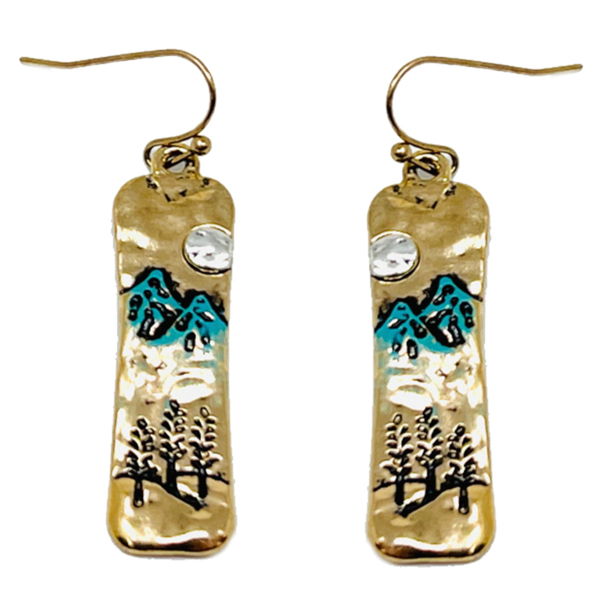 TEXTURED METAL TEARDROP FOREST SCENERY DANGLE HOOK EARRINGS