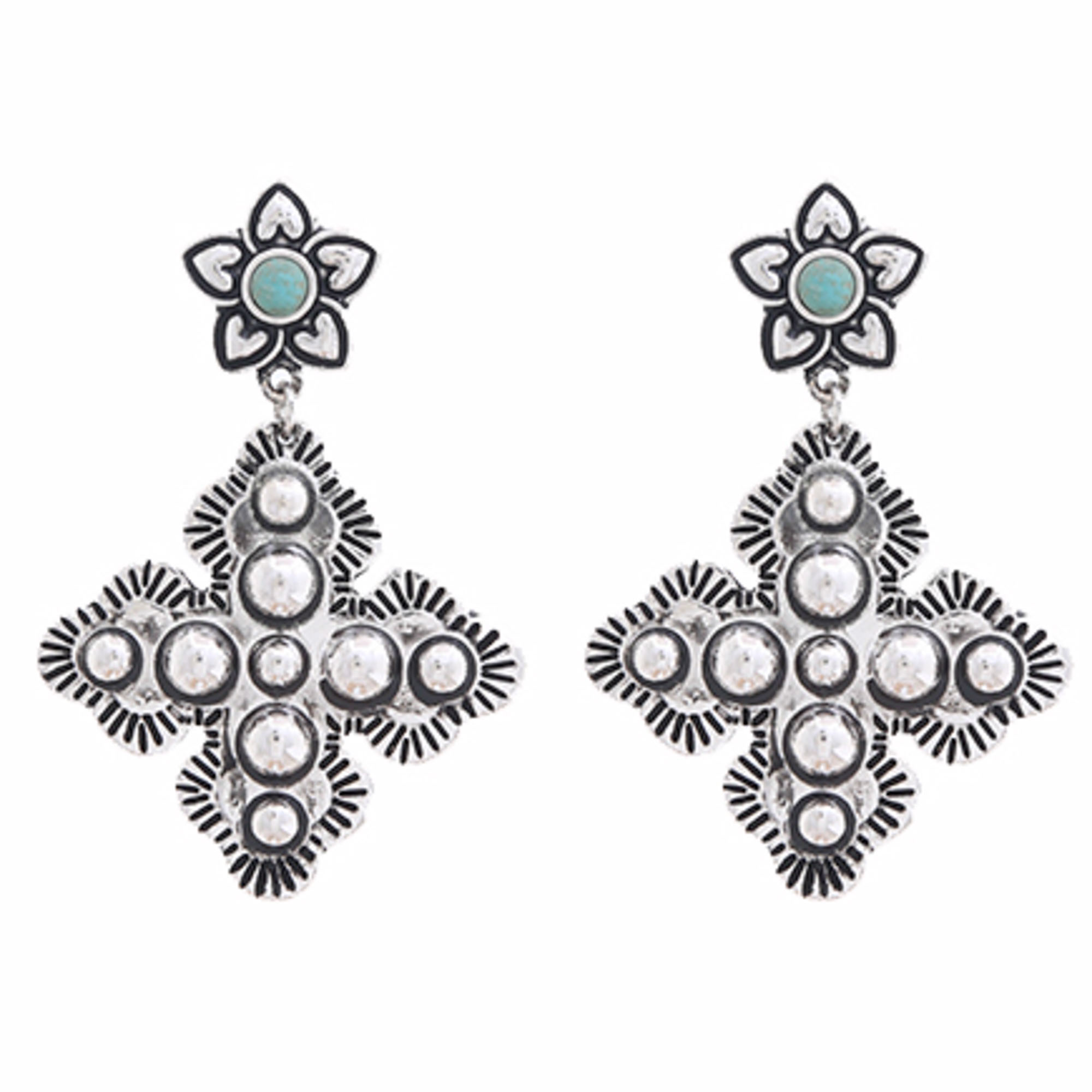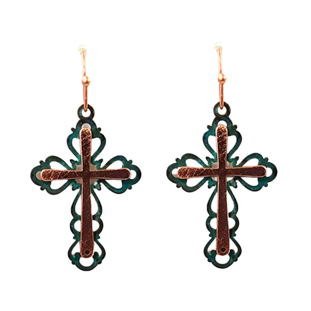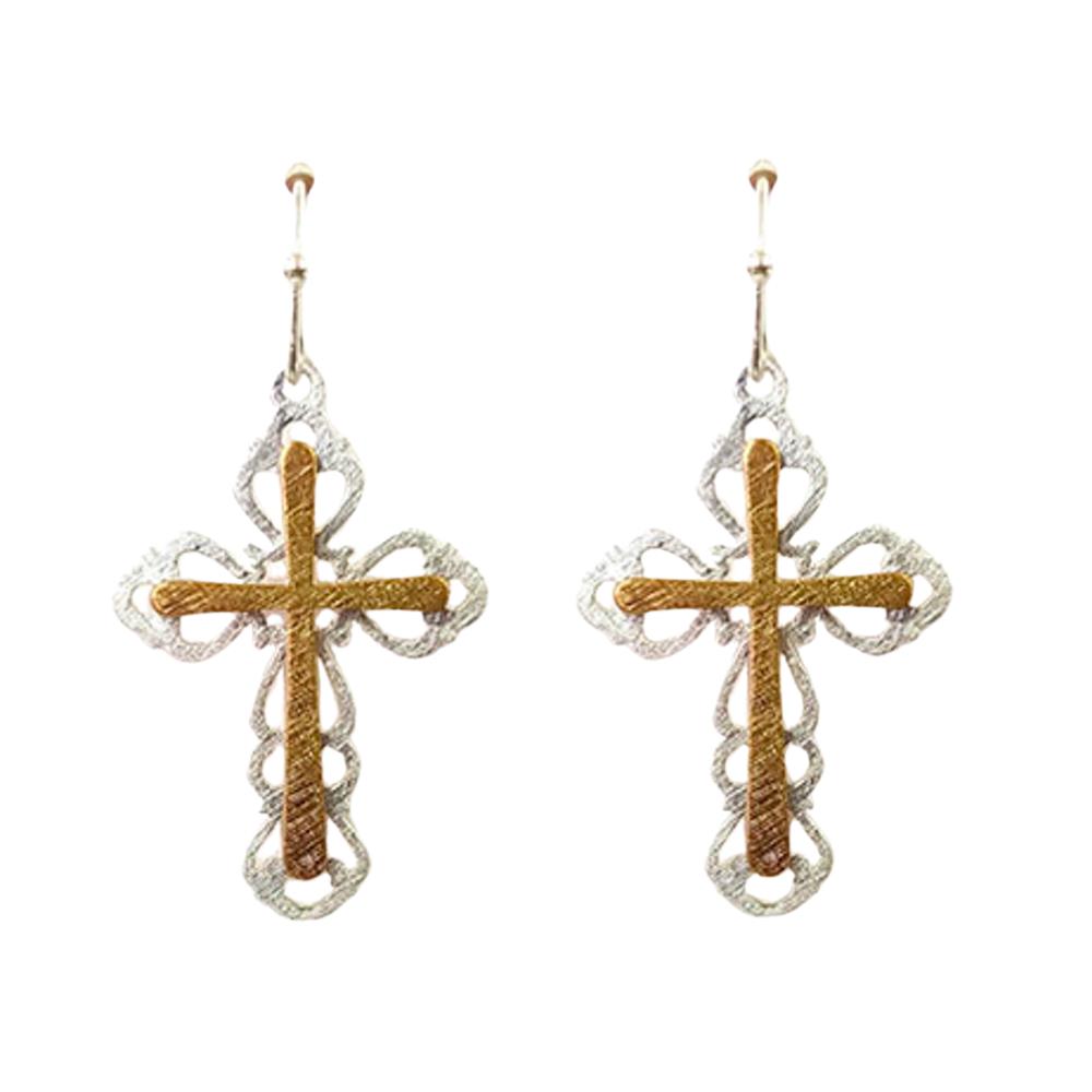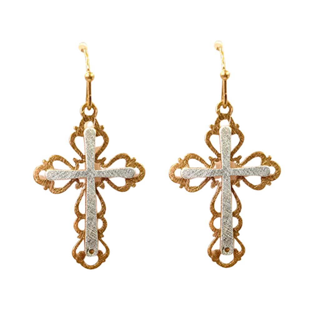 TWO TONE CROSS DANGLE EARRING