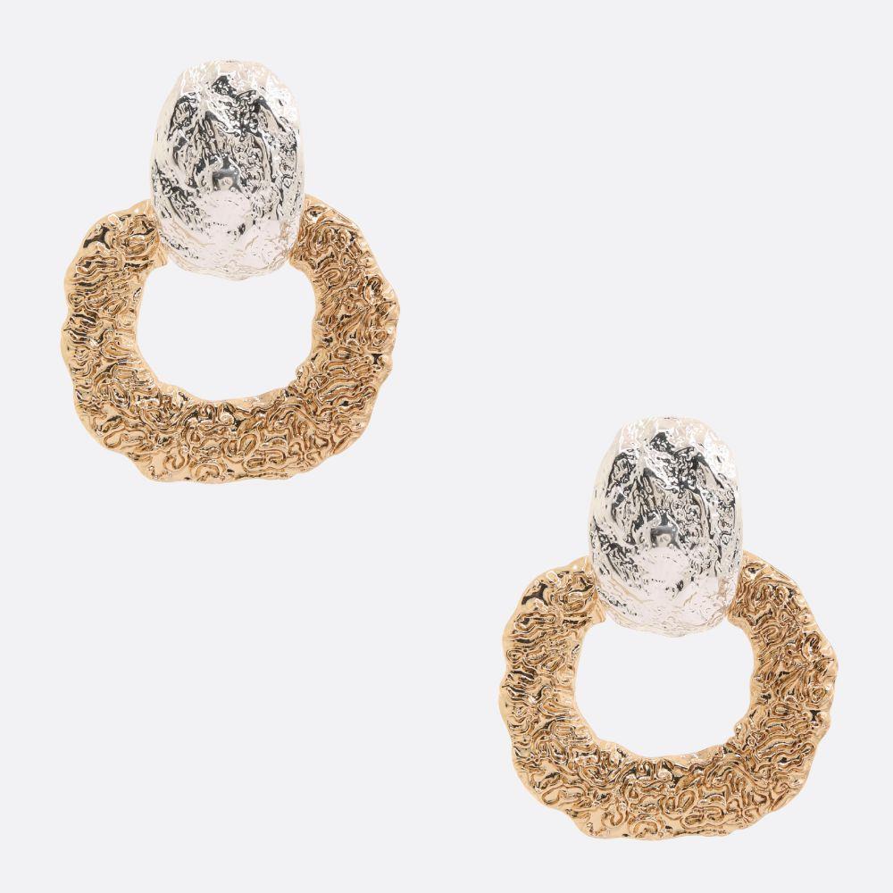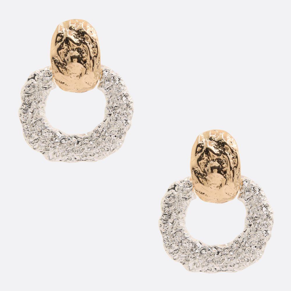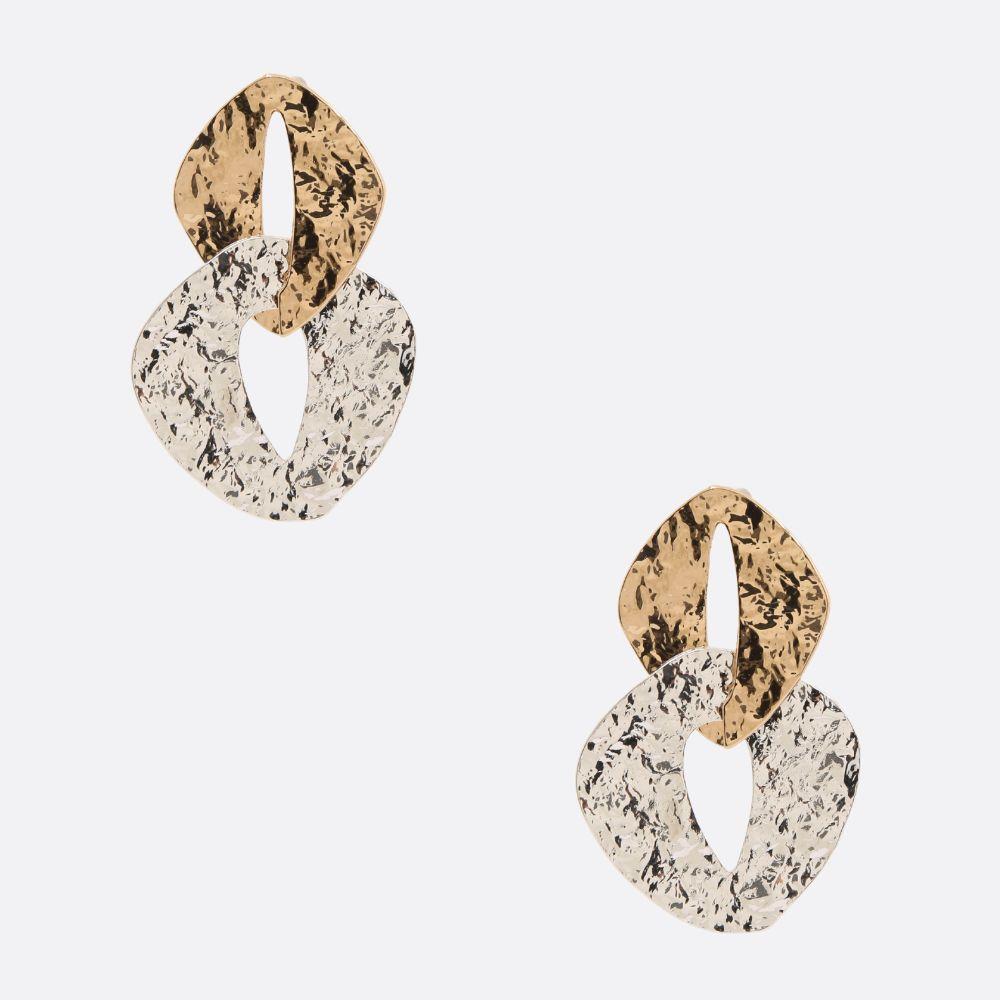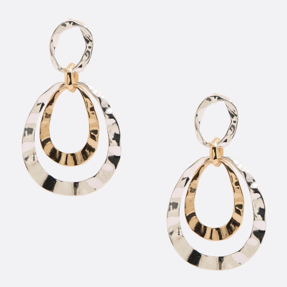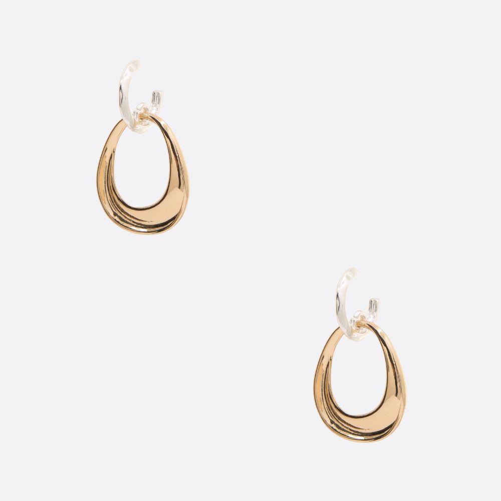 TWO TONE OVAL METAL LAYERED TEARDROP EARRING