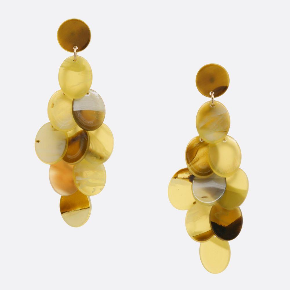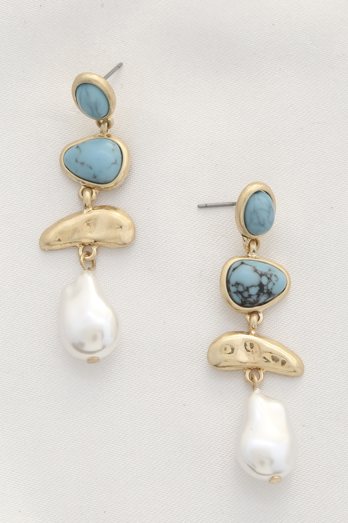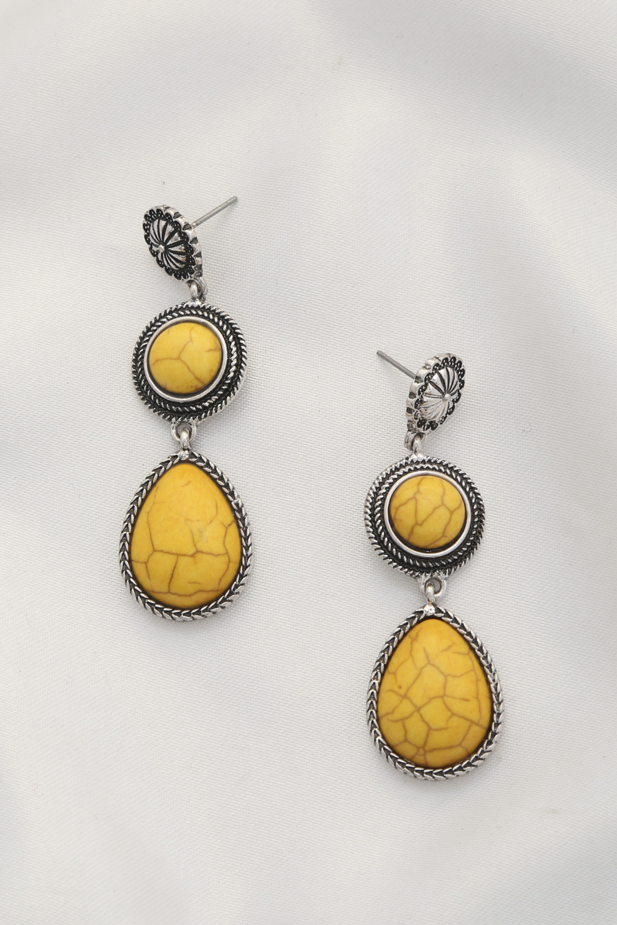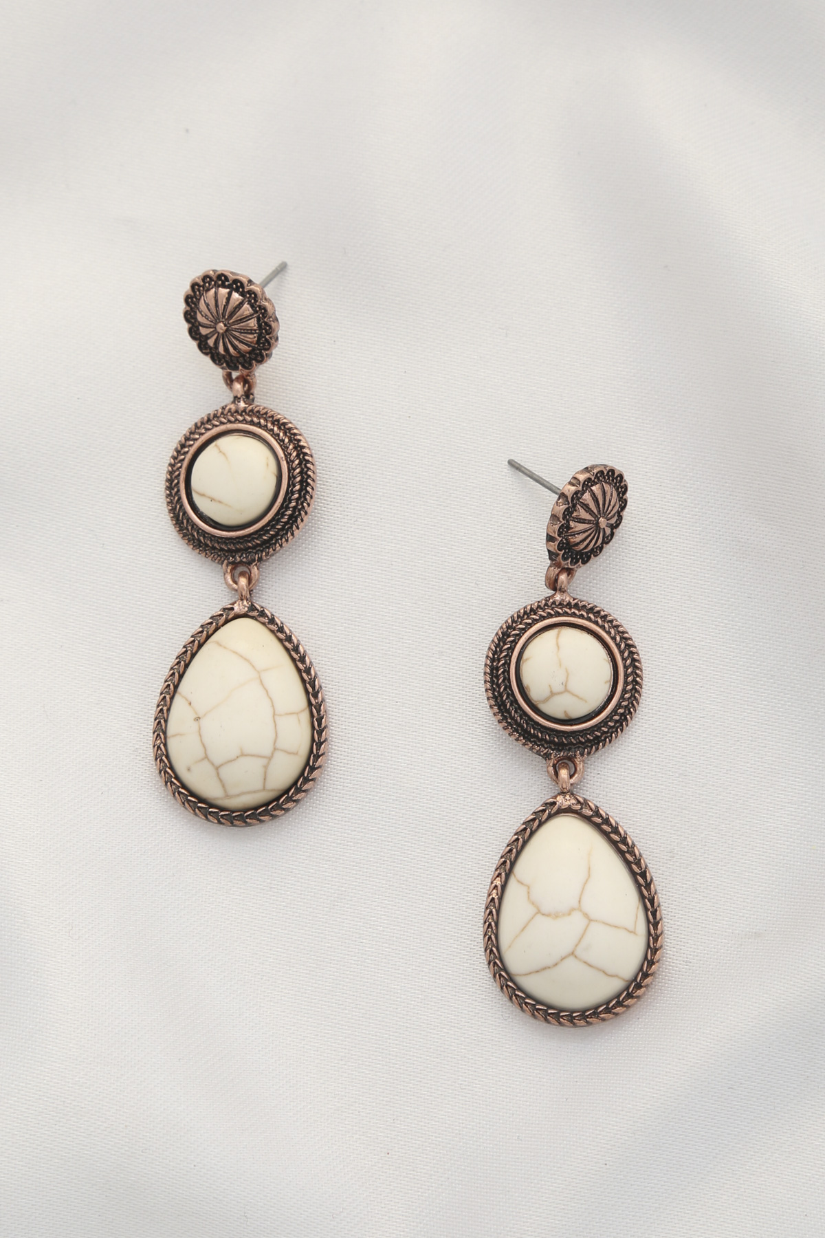 TWO TONE OVAL METAL LAYERED TEARDROP EARRING