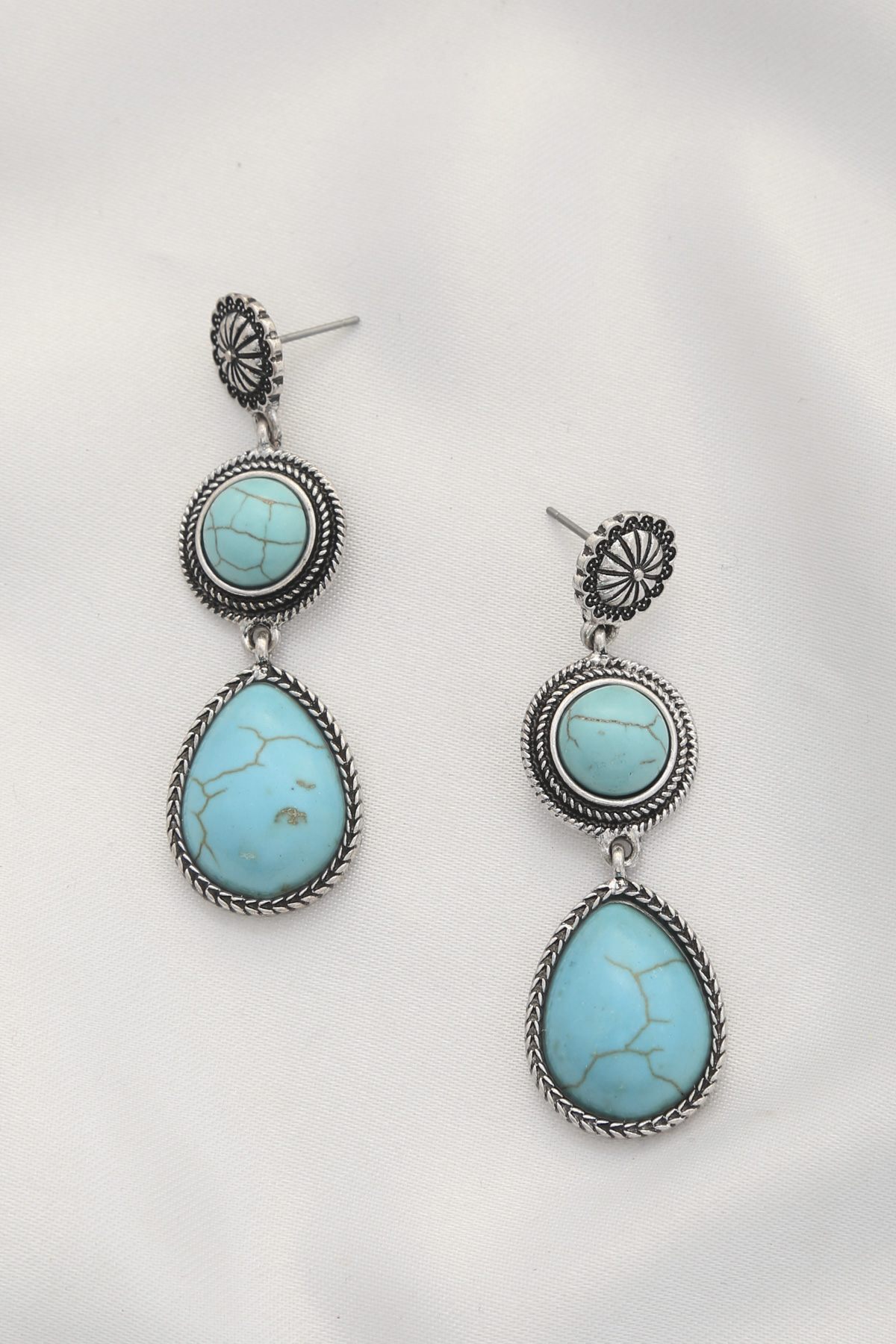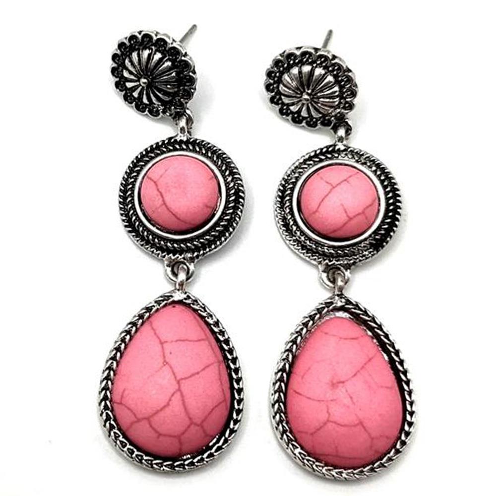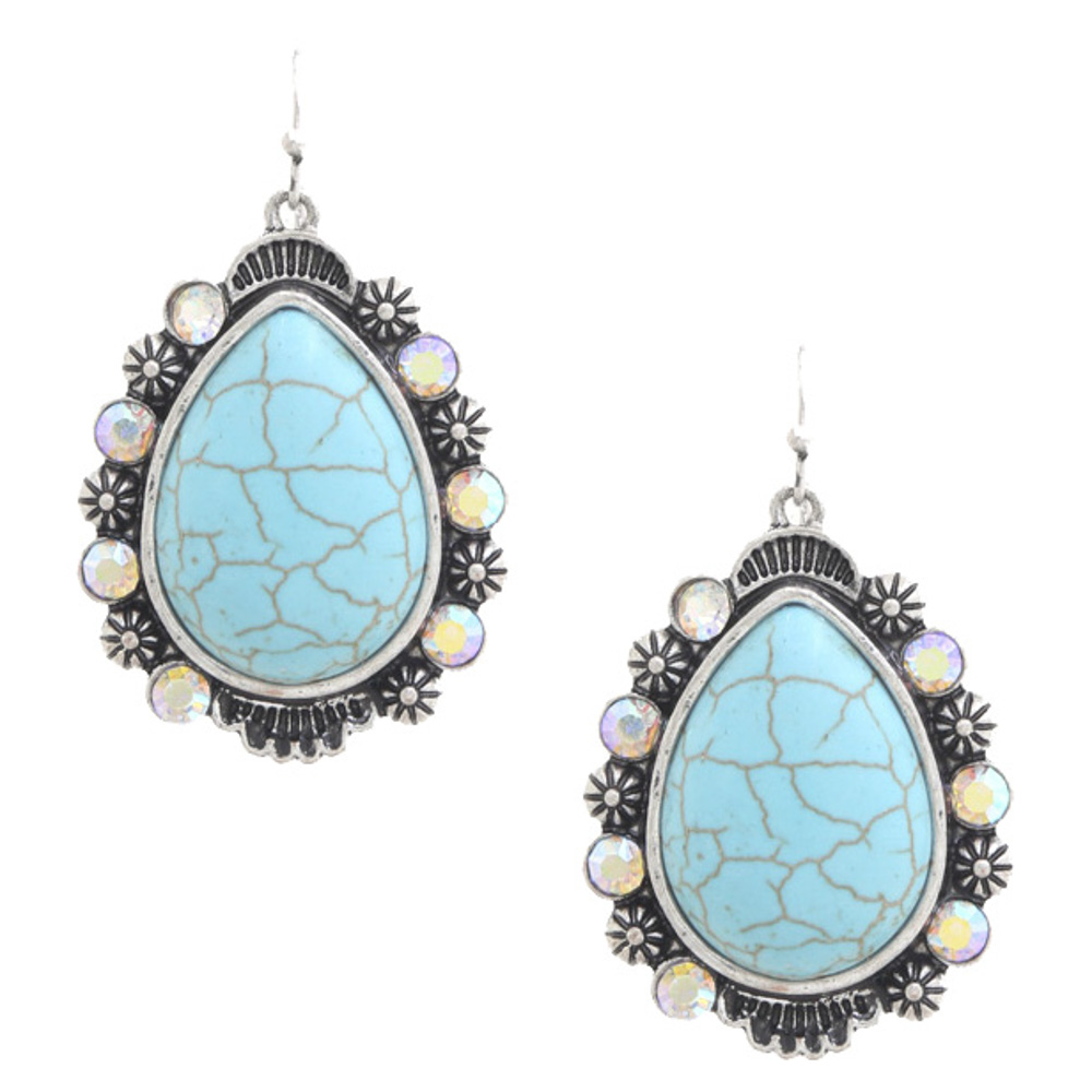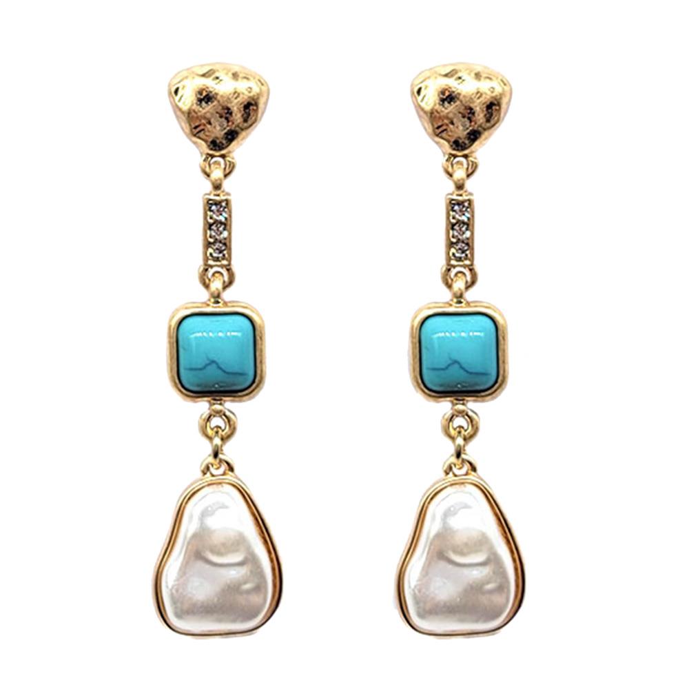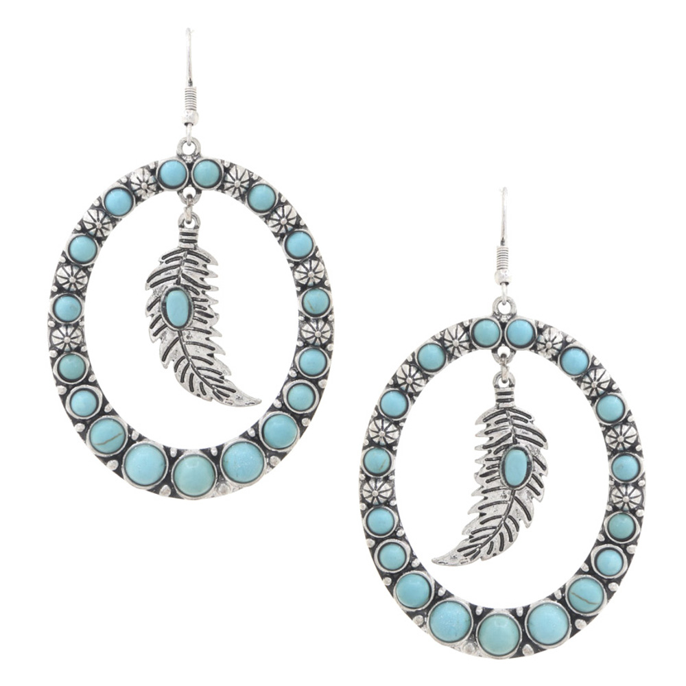 WETERN STYLE SWIRL TURQUOISE BEAD DANGLE EARRING