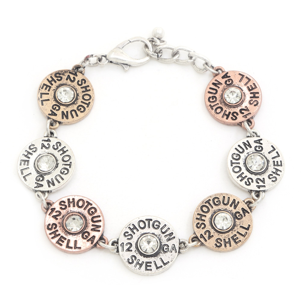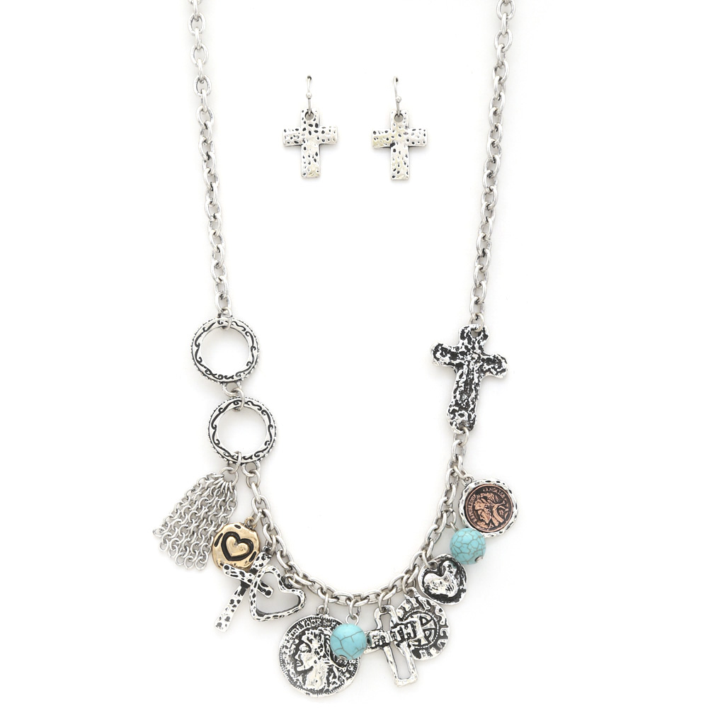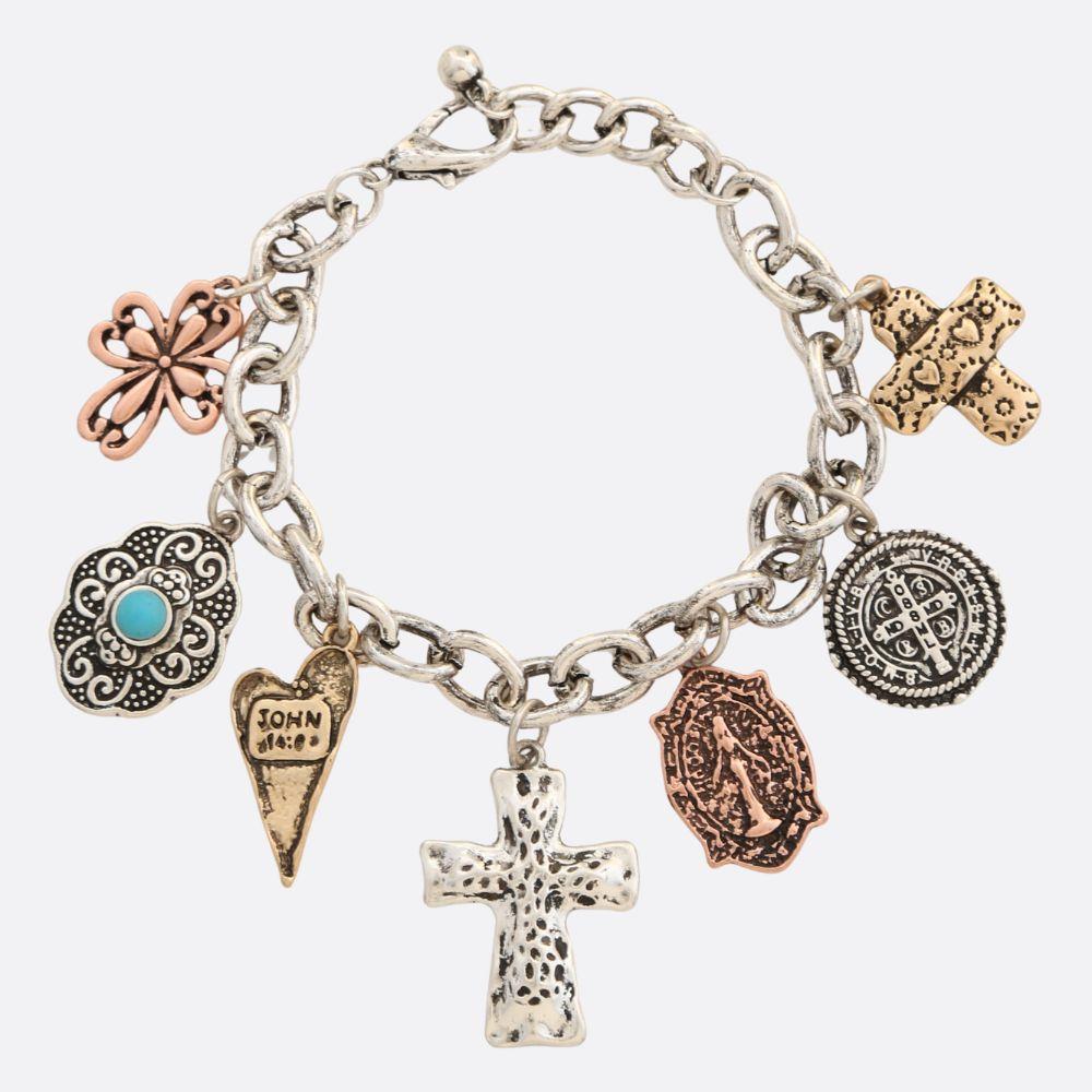 WESTERN STYLE CROSS MULTI CHARM METAL BRACELET