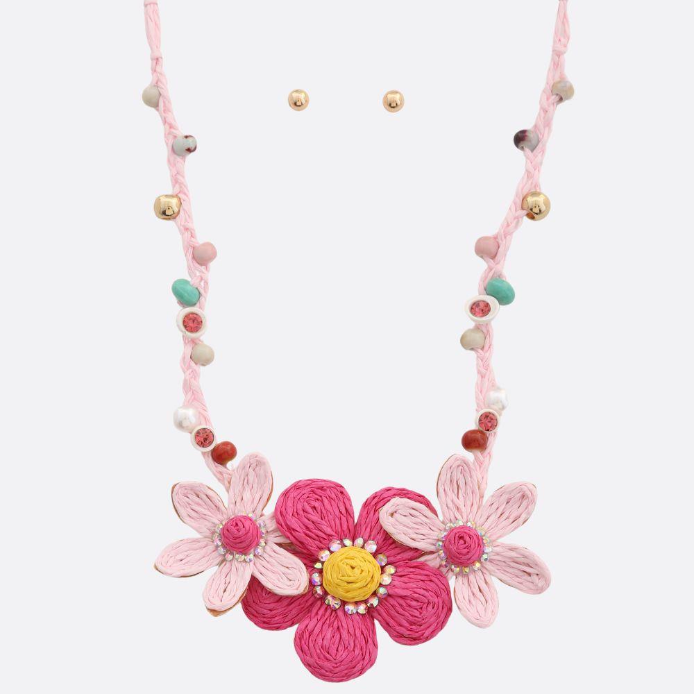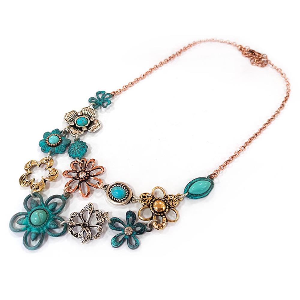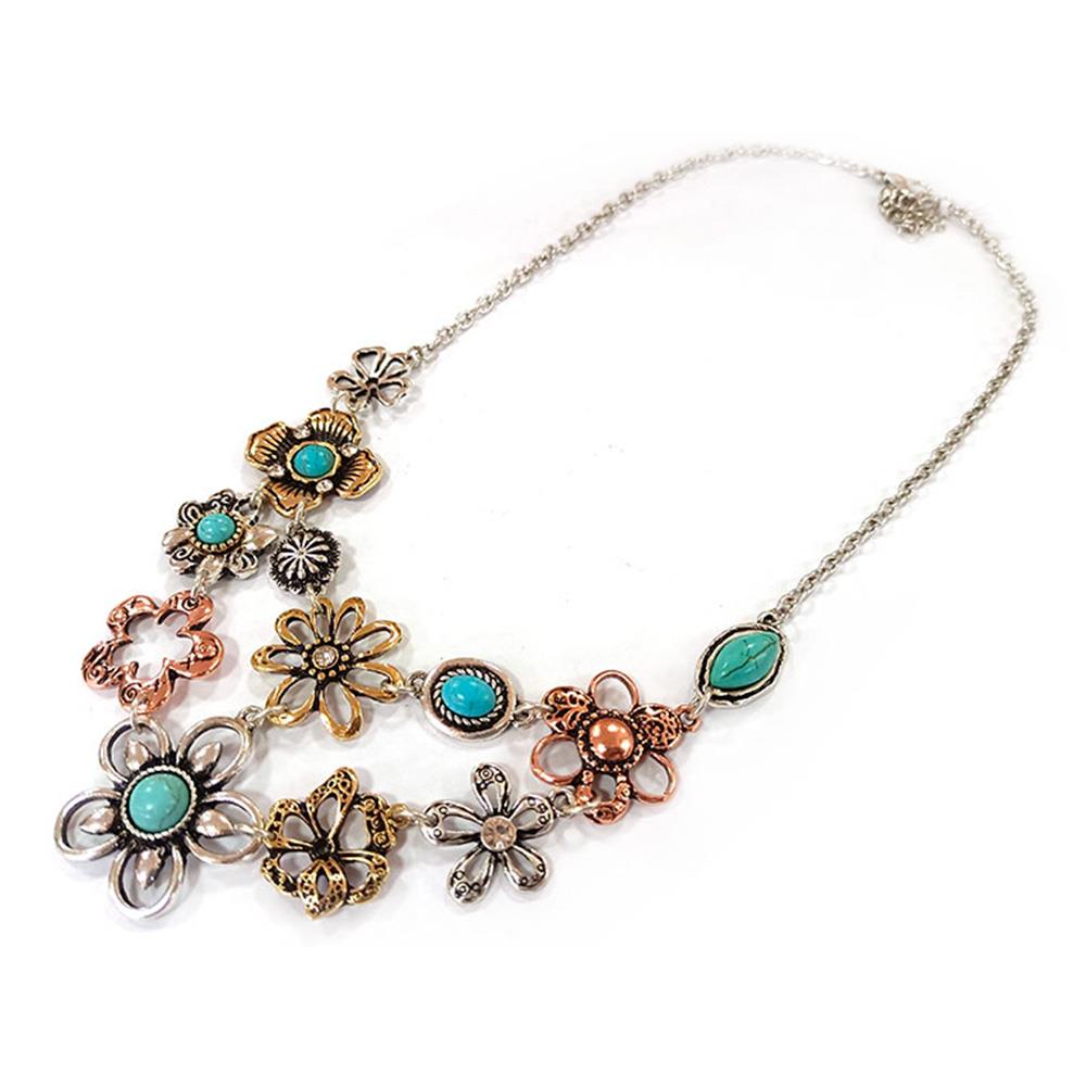 CHUNKY FLOWER RHINESTONE BOHO METAL NECKLACE
