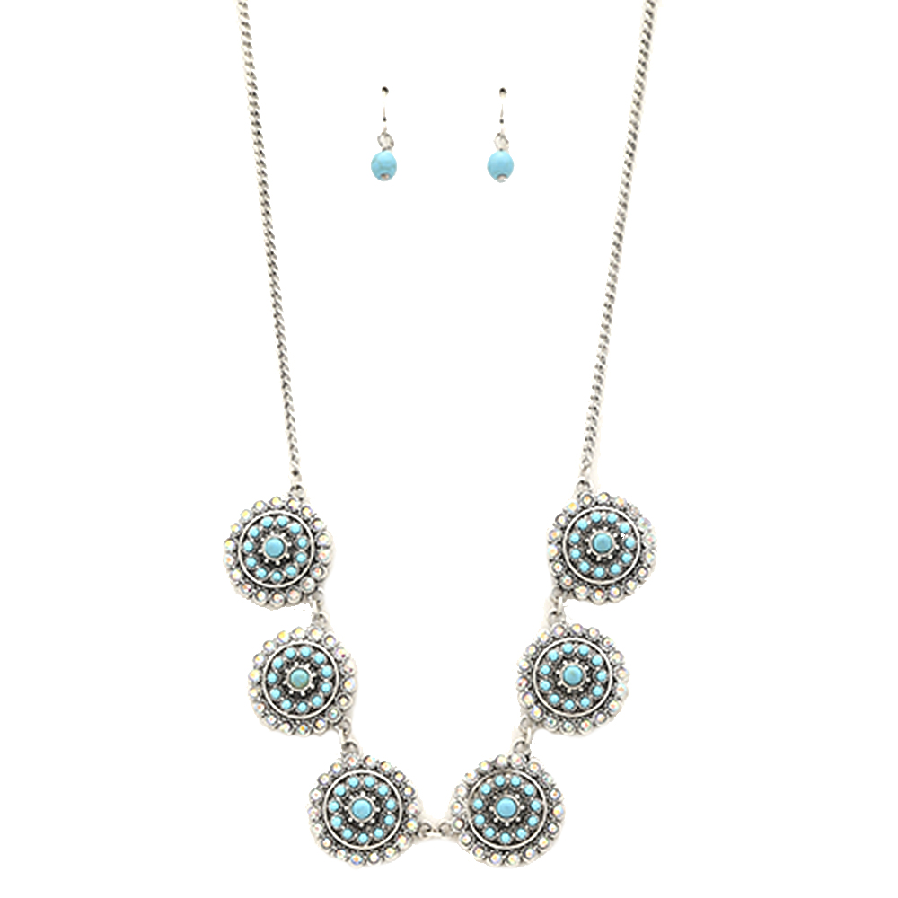 WESTERN STYLE TQ STONE LONG ADJUSTABLE NECKLACE EARRING SET