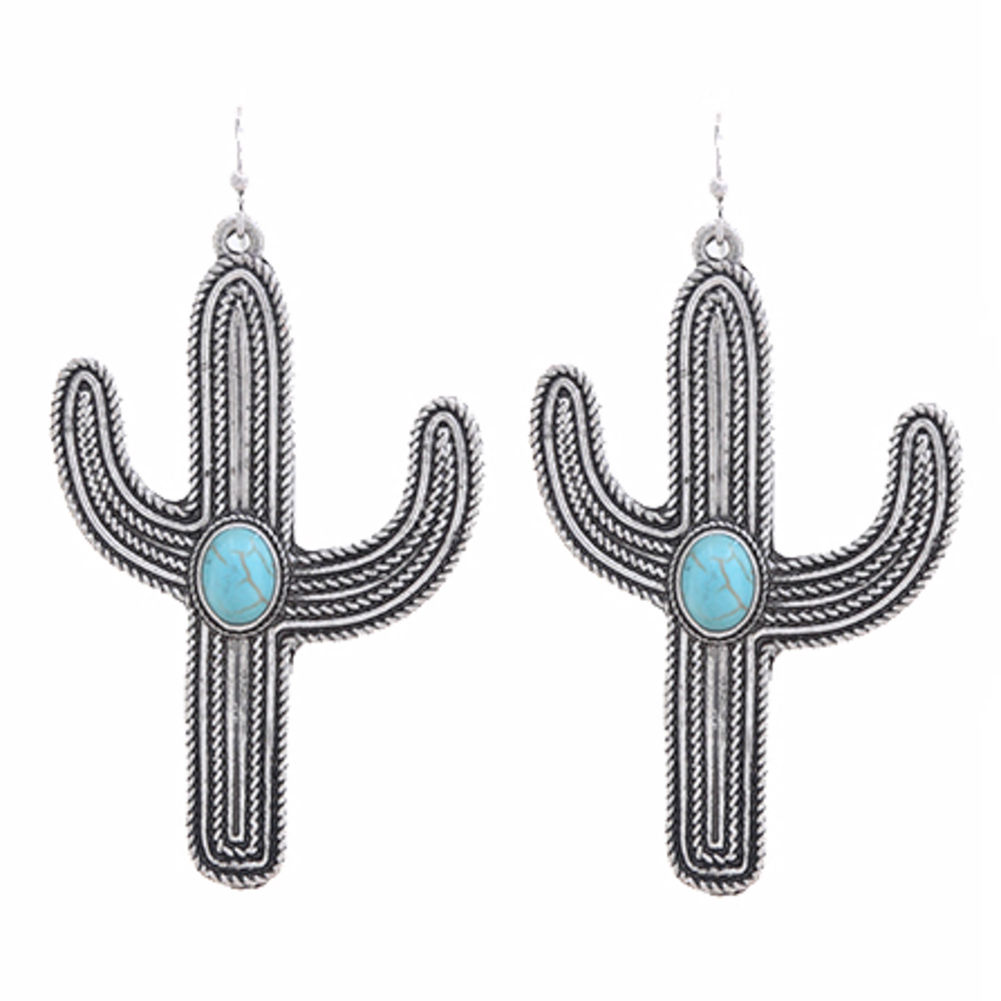 TEXTURED METAL CACTUS LAYERED DESIGN DANGLE HOOK EARRINGS