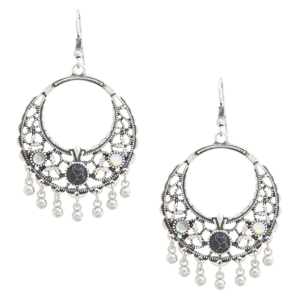 WESTERN STYLE STONE STAR AND MOON DANGLE EARRING