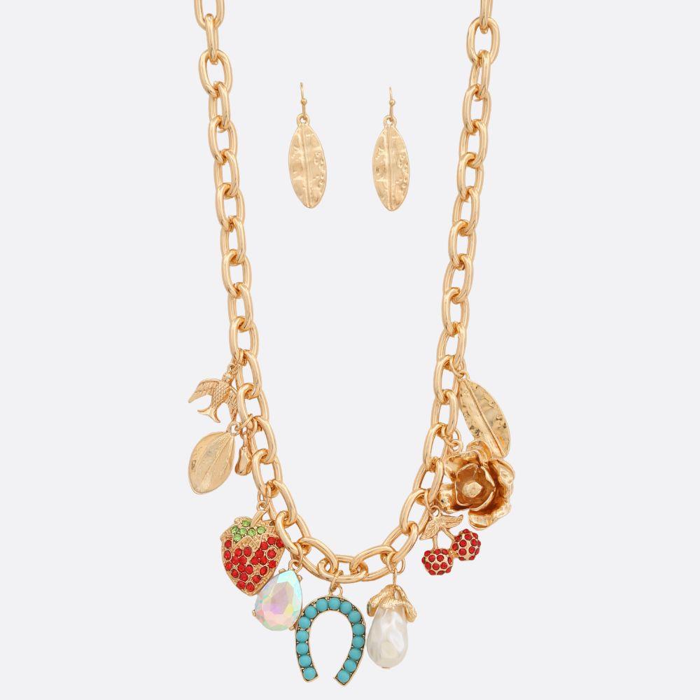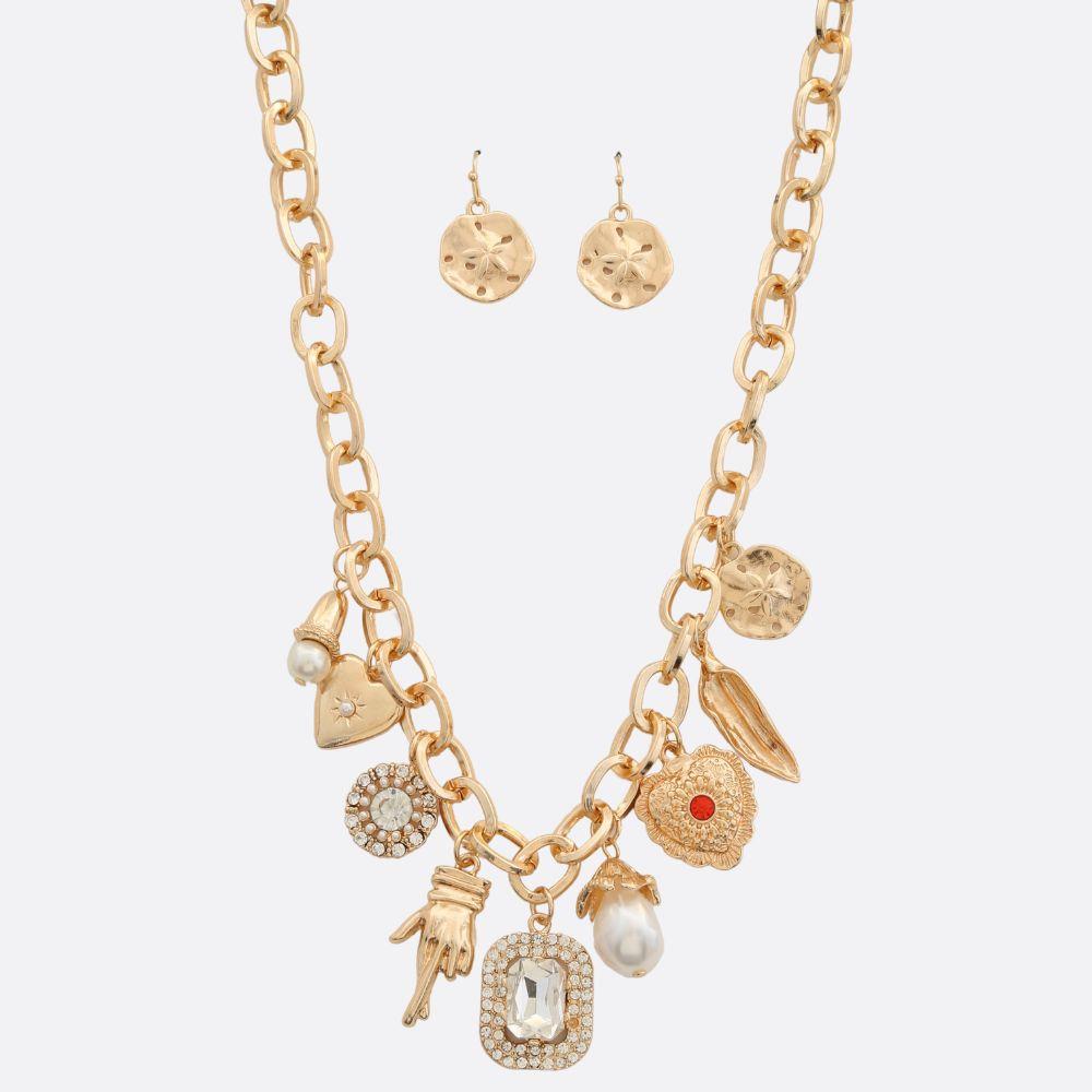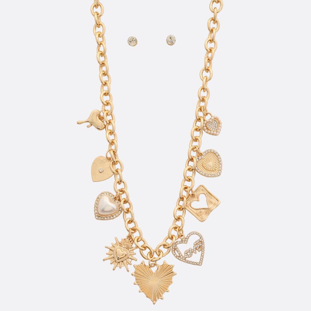 HEART PENDANT MULTI CHARM LAYERED NECKLACE