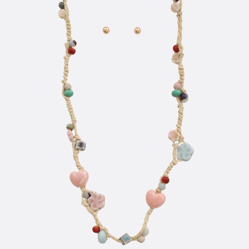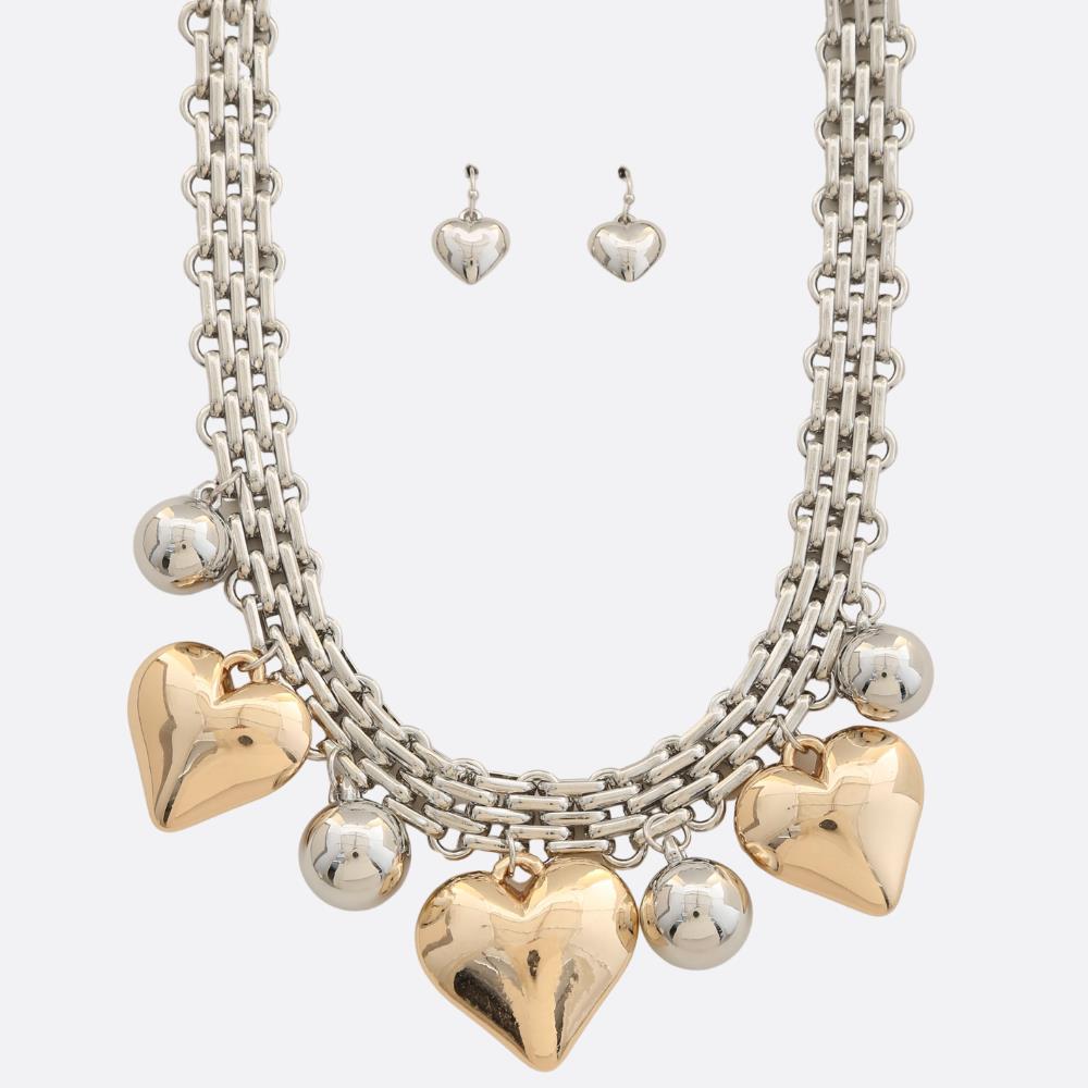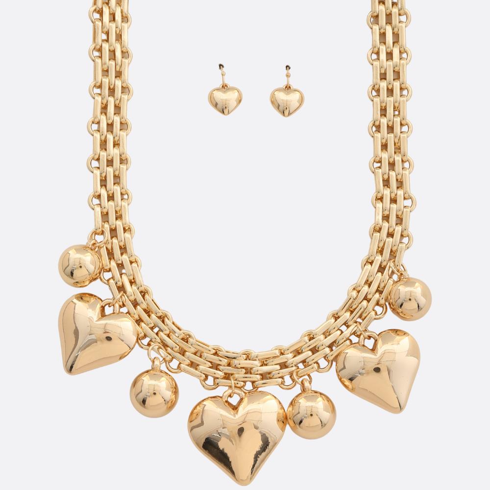 PUFFY HEART PENDANT BEADED NECKLACE
