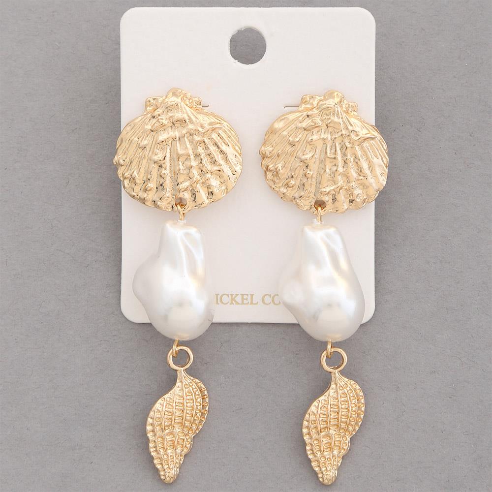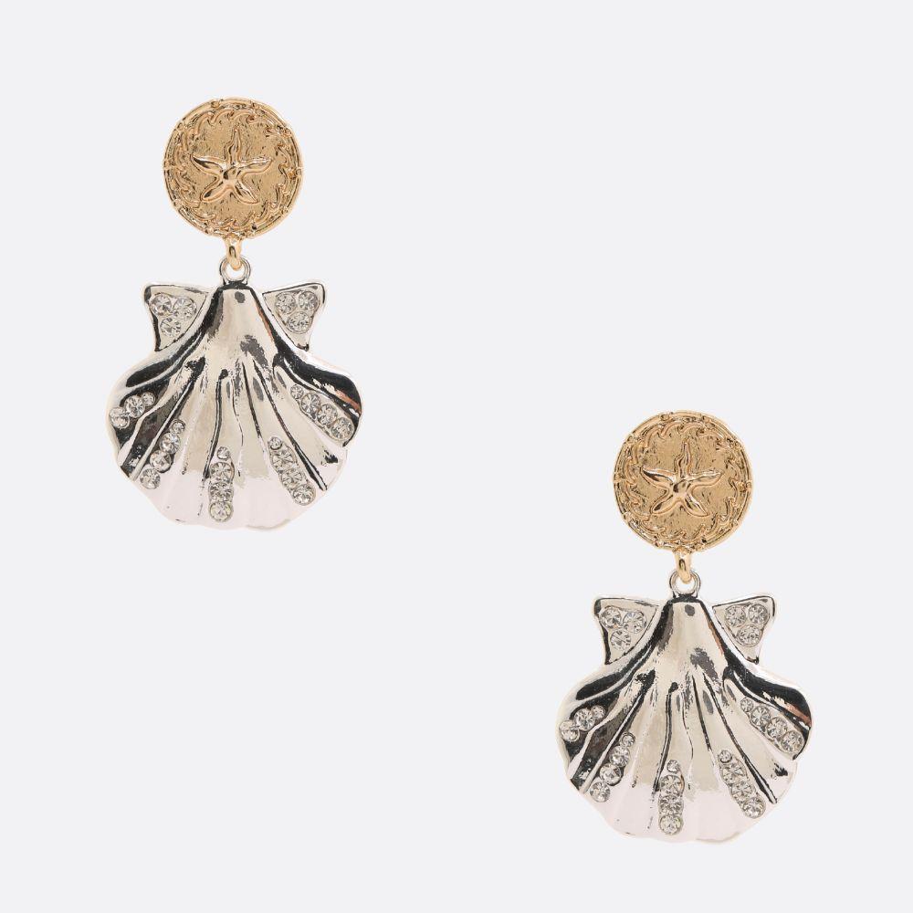 TWO TONE SEASHELL DANGLE EARRING