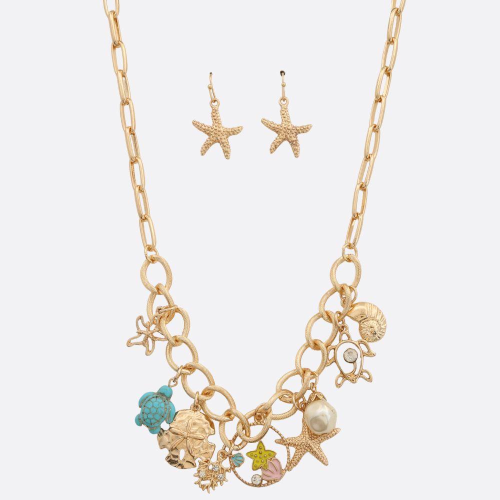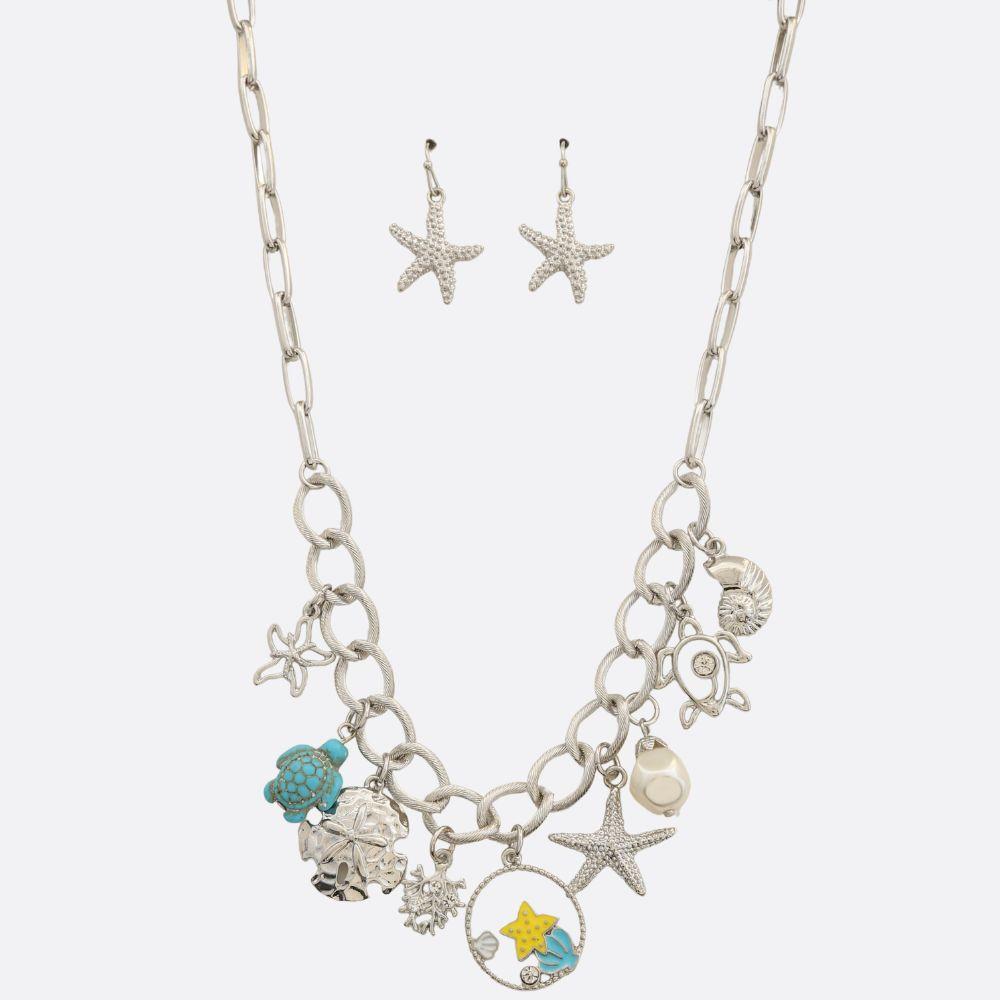 SEA LIFE CHARM RHINESTONE BEADED NECKLACE