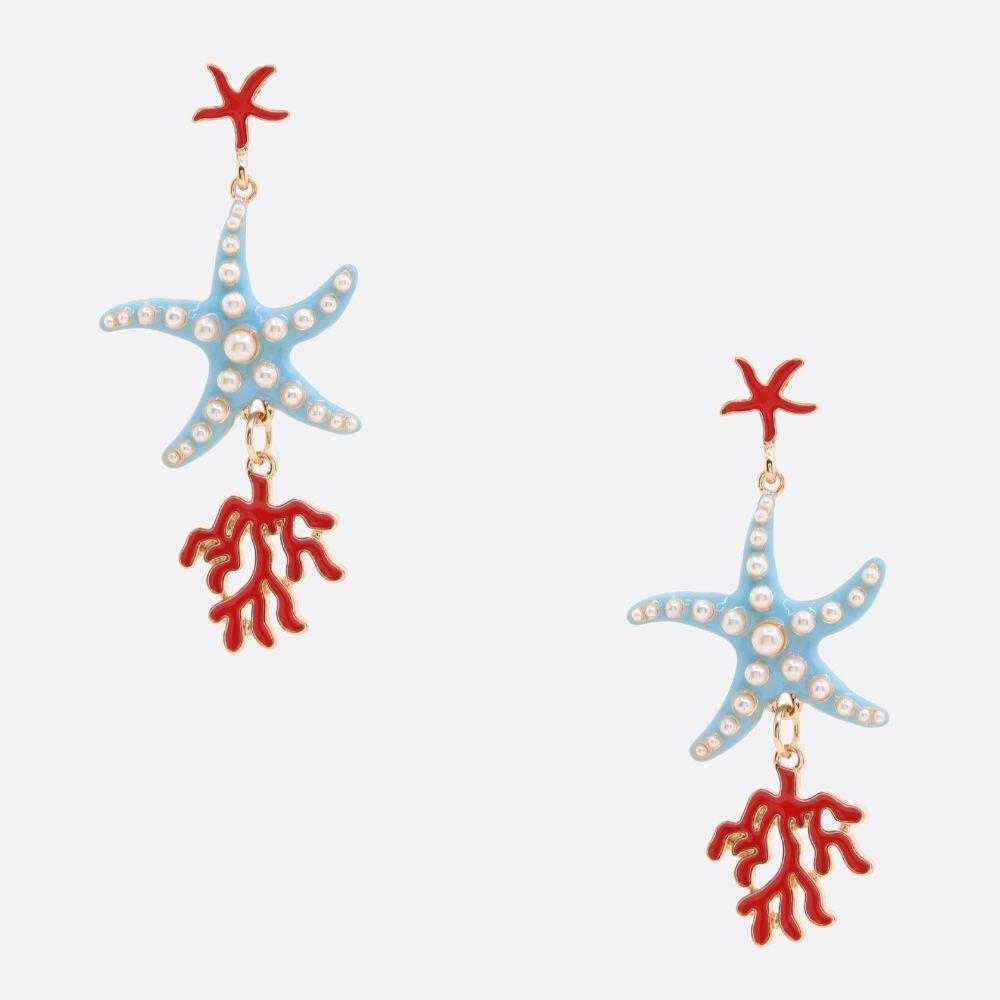 STARFISH BEADED TEARDROP DANGLE EARRING