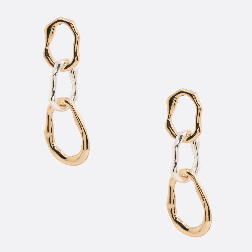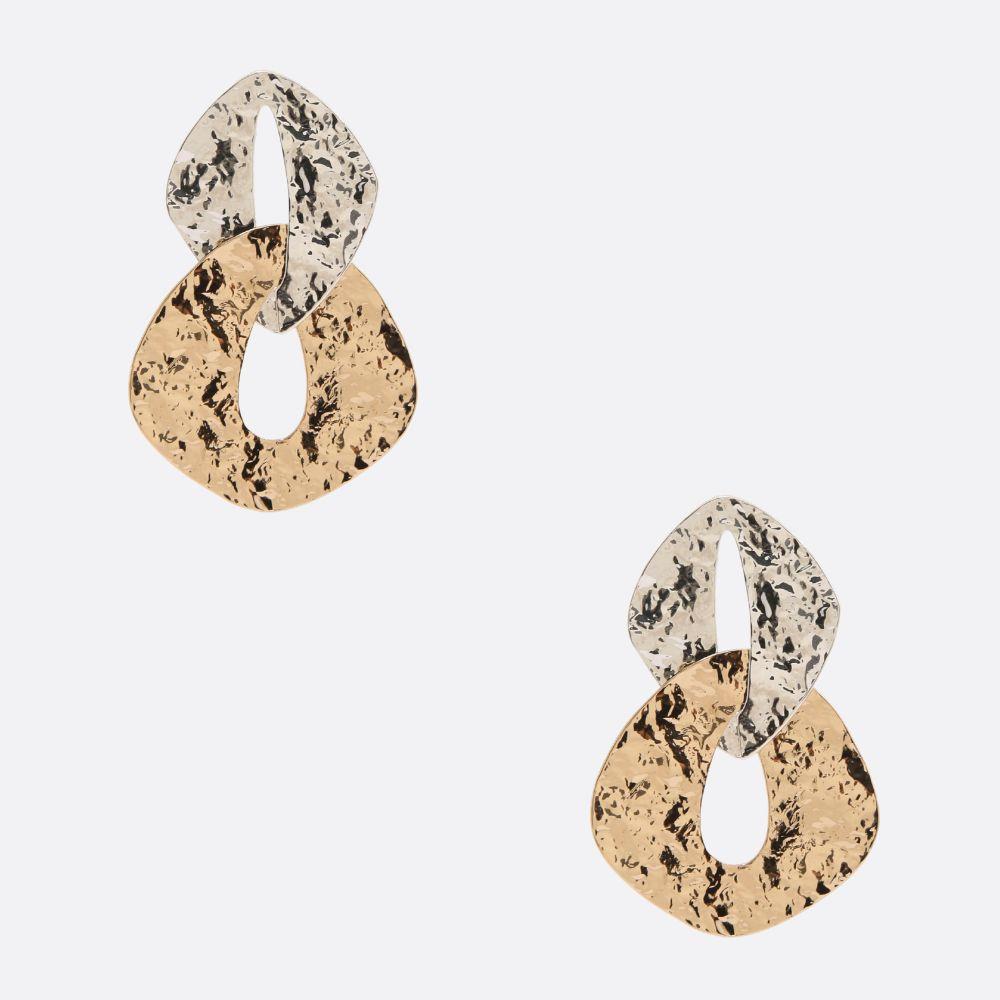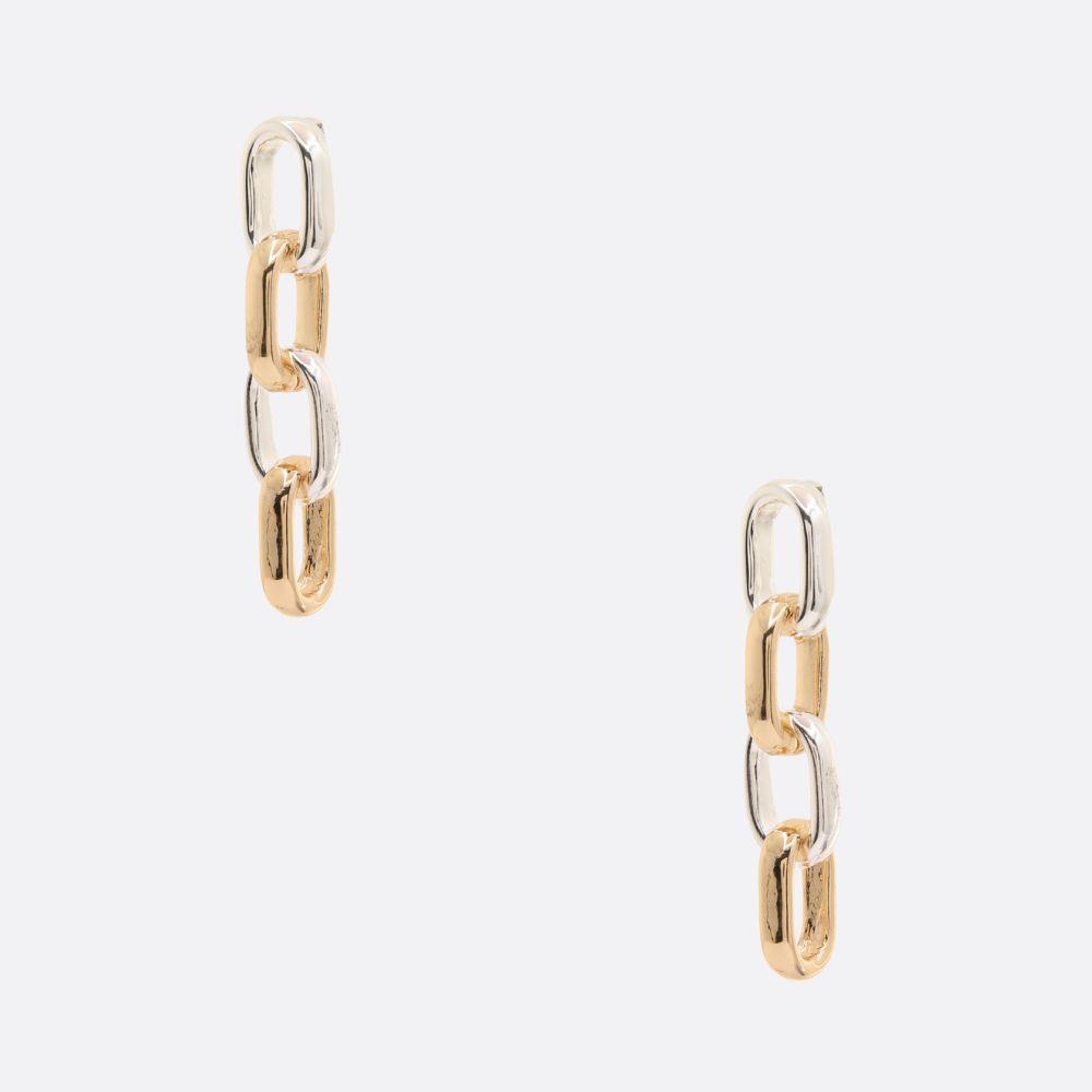TWO TONE LINK METAL DANGLE EARRING