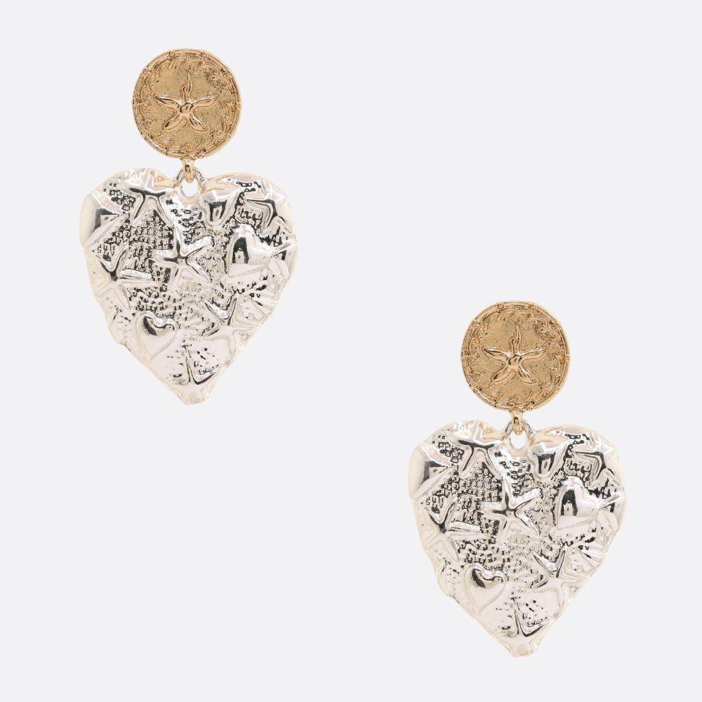 TWO TONE HEART SHAPE COIN LINK DANGLE EARRING