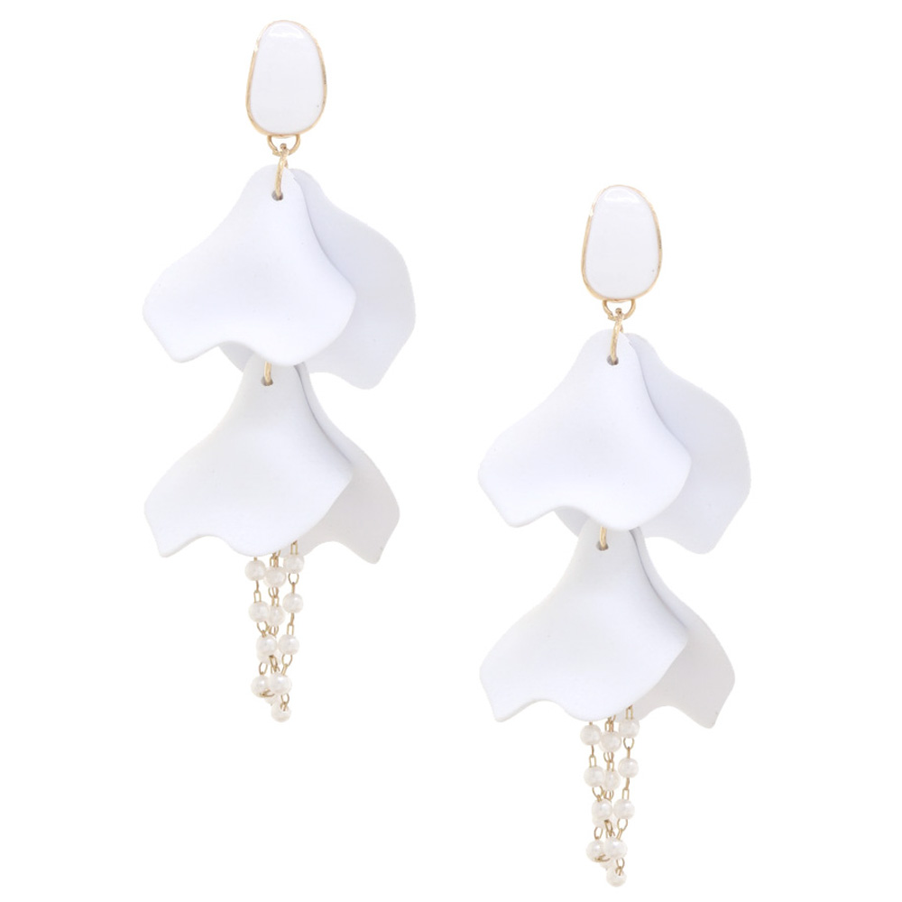 SMOOTH TEXTURE PETAL PEARL CHAIN DANGLE EARRING