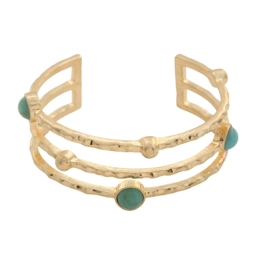 WESTERN AZTEC PATTERN TURQUOISE CHIP METAL BRACELET