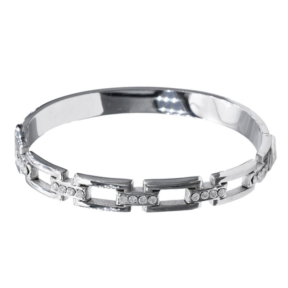 CZ OVAL LINK STAINLESS STEEL BANGLE BRACELET