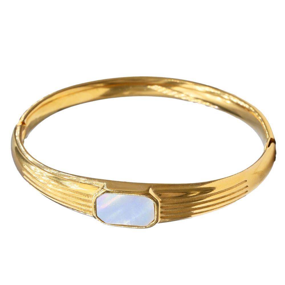 MOTHER OF PEARL STAINLESS STEEL BANGLE BRACELET