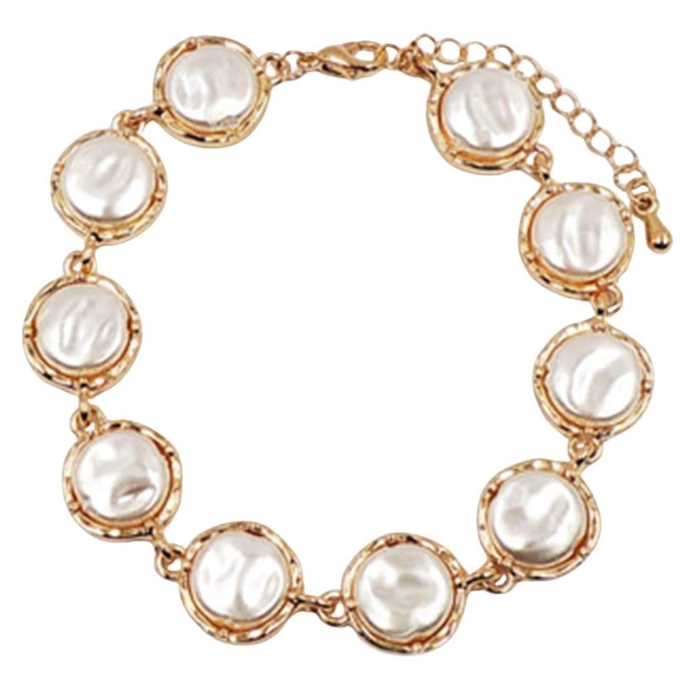 OVAL PEARL BEAD OVAL METAL BRACELET