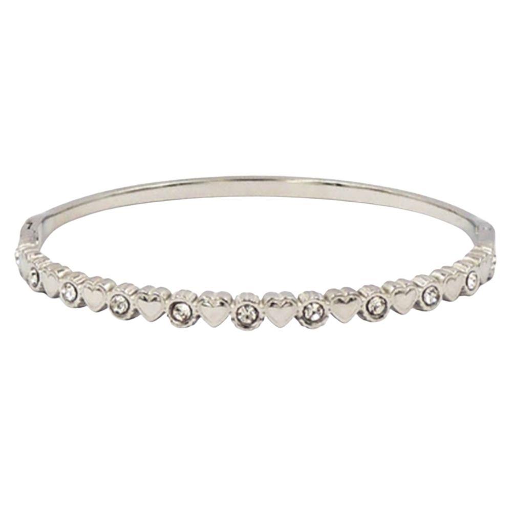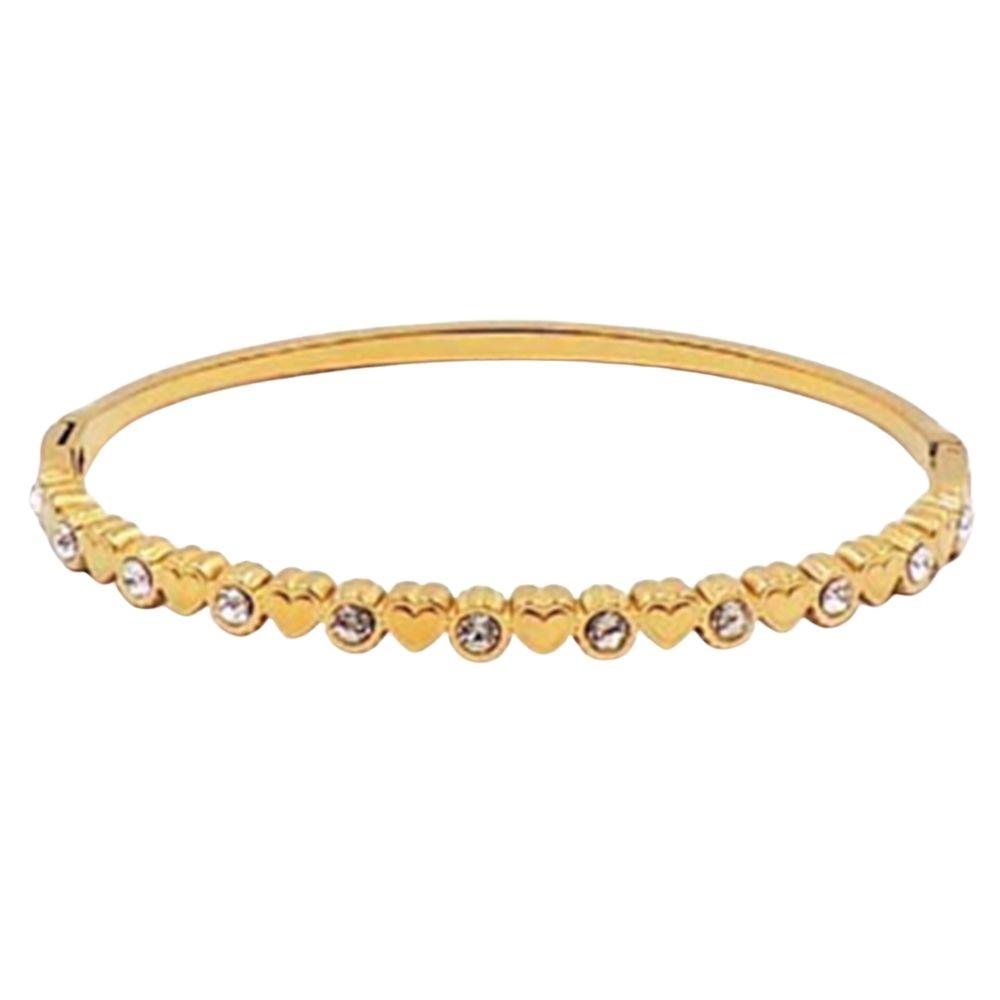 STAINLESS STEEL CRYSTAL HEART METAL BANGLE BRACELET