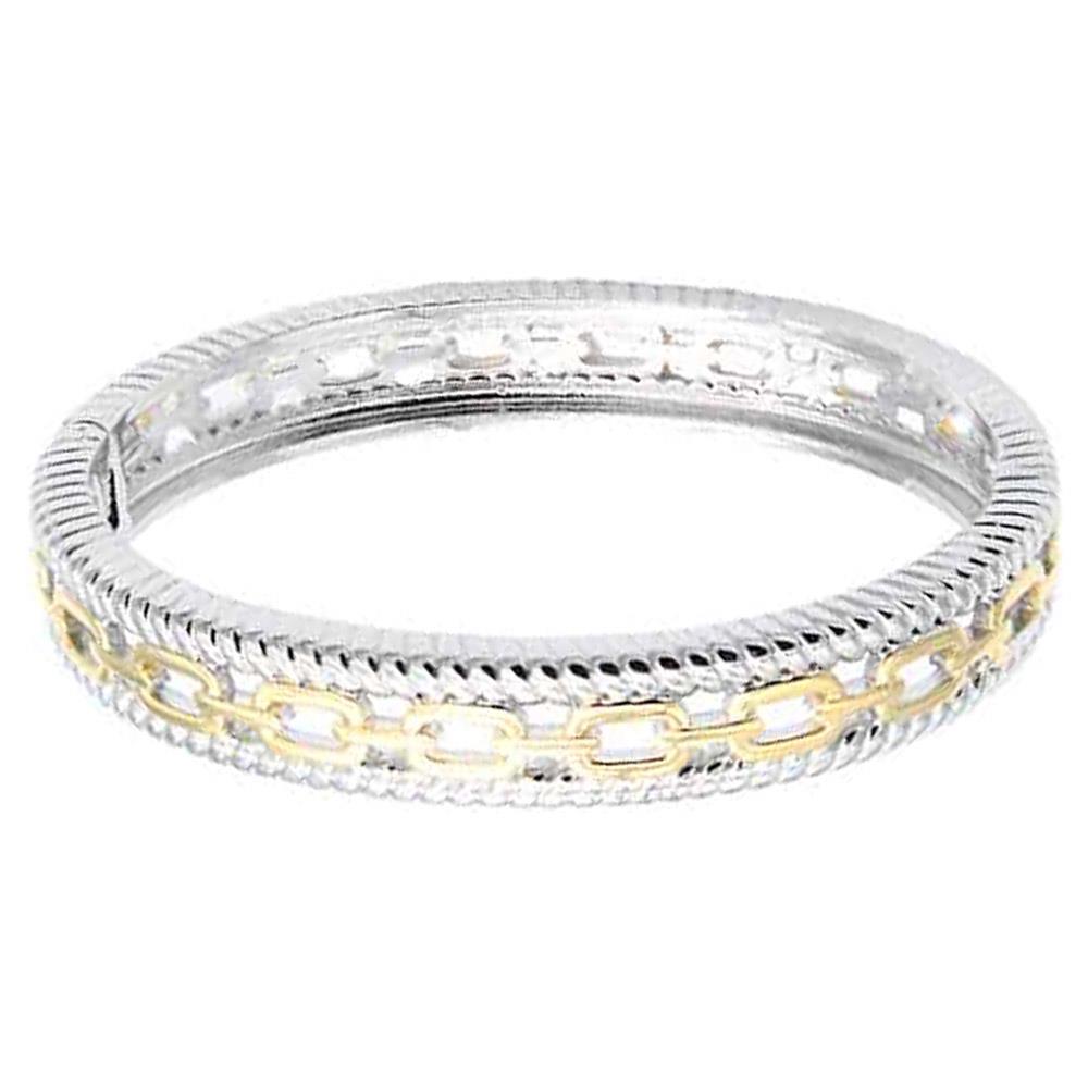 TWO TONE PUSH LOCK BANGLE BRACELET