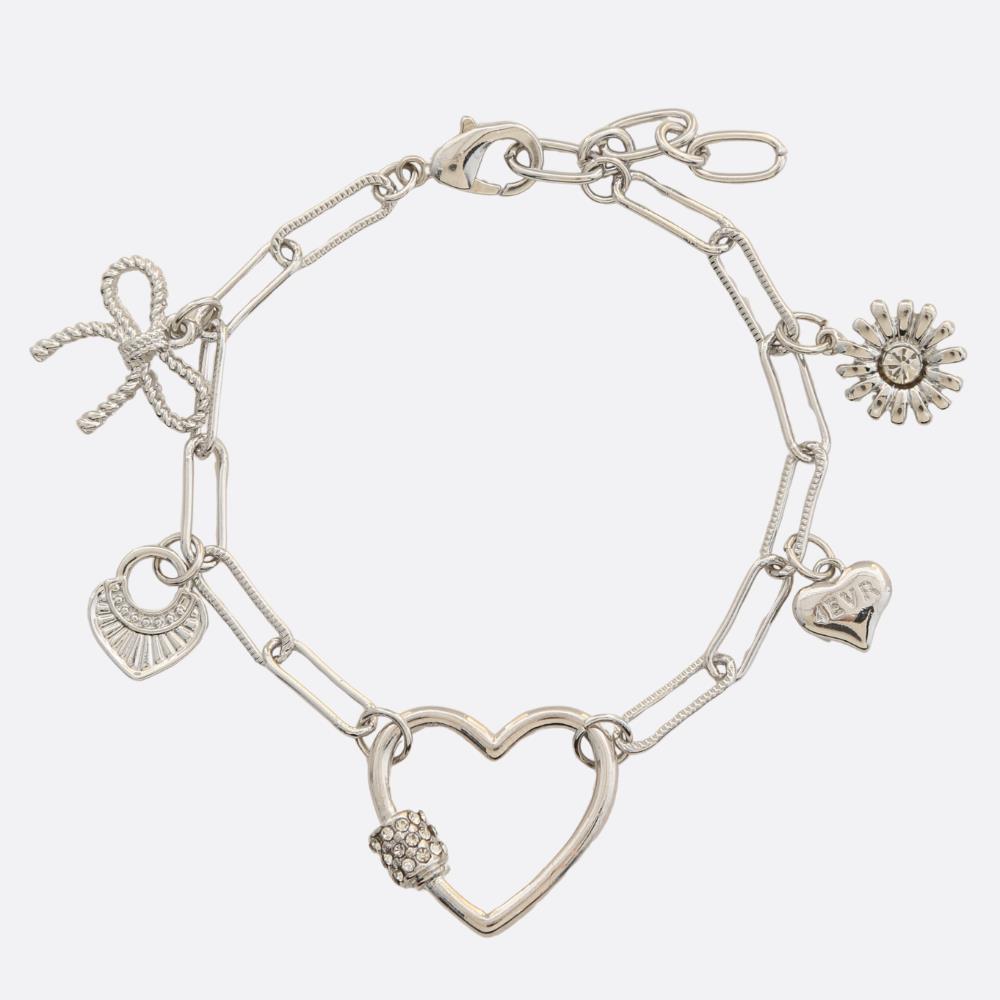 RIBBON BOW HEART PEARL BEAD CURB LINK METAL BRACELET