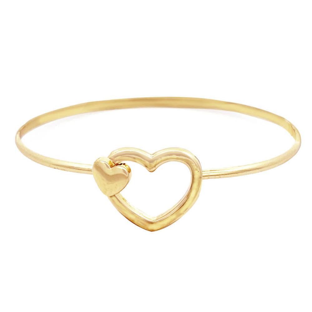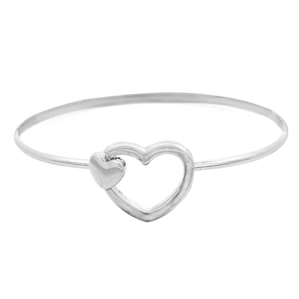 STAINLESS STEEL HEART STONE HINGED BRACELET