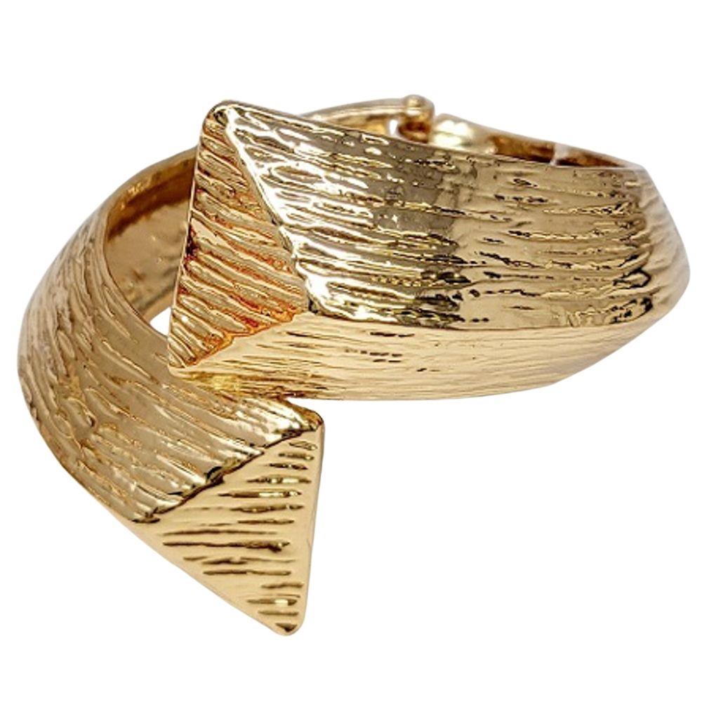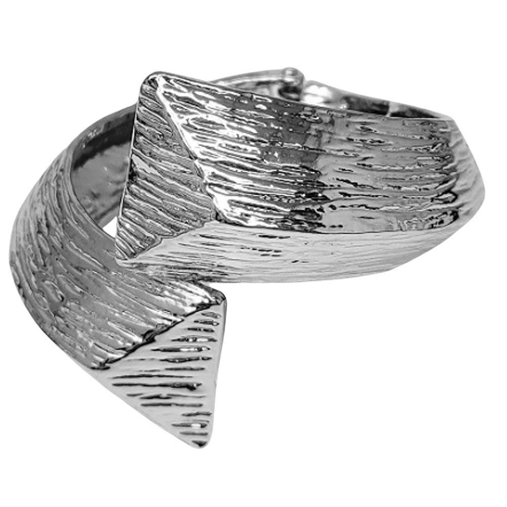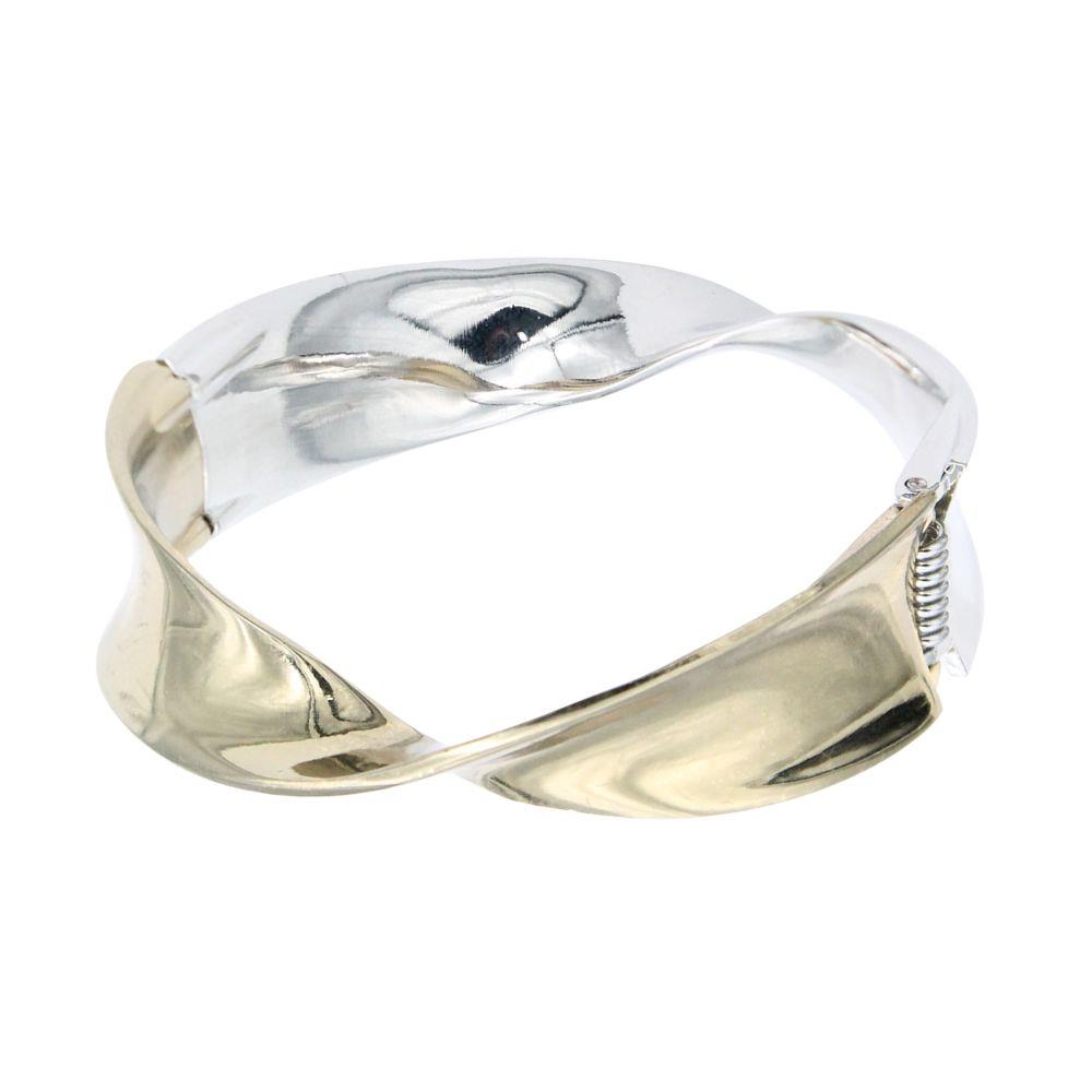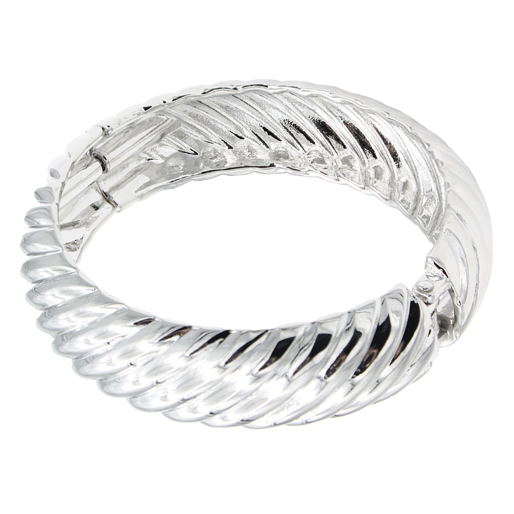 TEXTURED METAL TWISTED HINGED BANGLE BRACELET