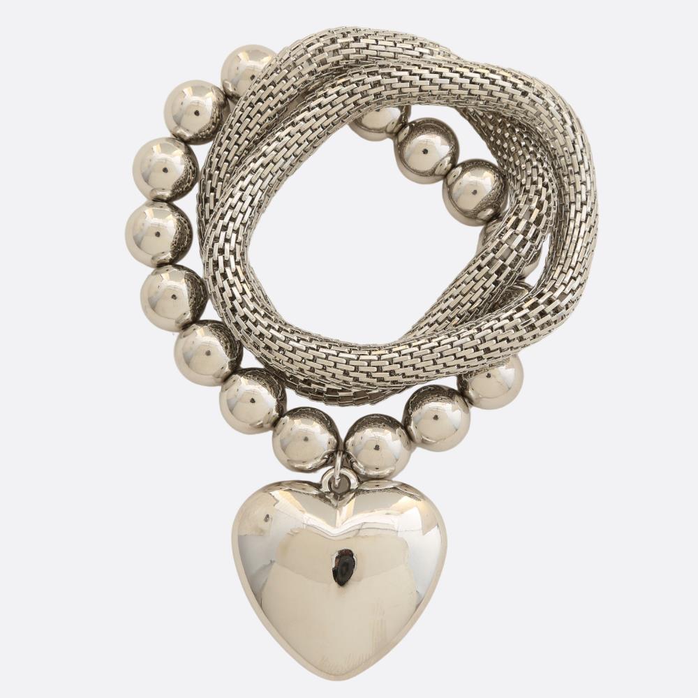 SDJ FILIGREE PATTERN HEART LOCKET TOGGLE CLASP METAL BRACELET