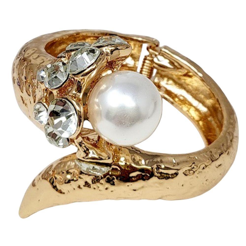 RHINESTONE PEARL BEAD METAL BANGLE BRACELET