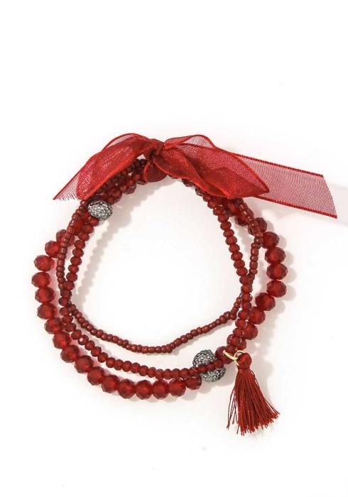 TRIPLE LAYERED TASSEL BEAD OVAL SHAPE BRACELET