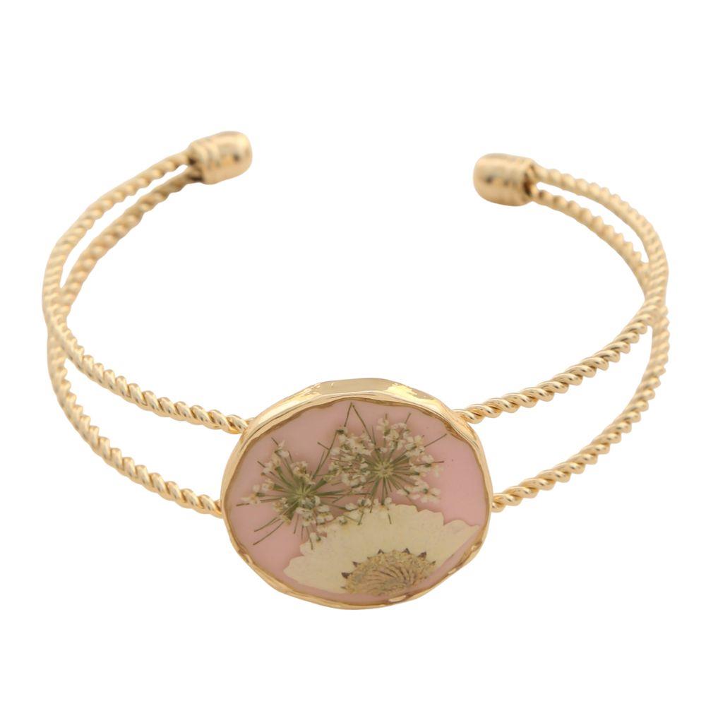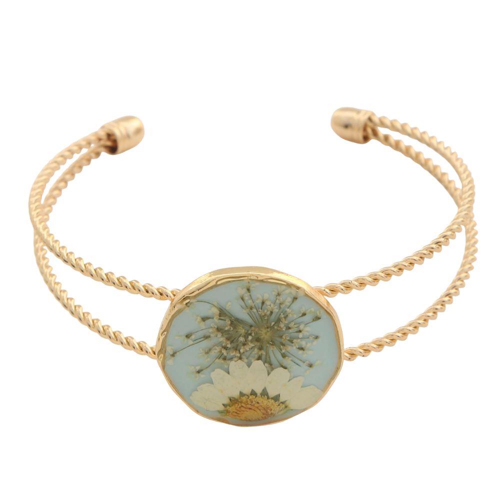DRIED FLOWER ENCAPSULATED METAL CUFF BRACELET
