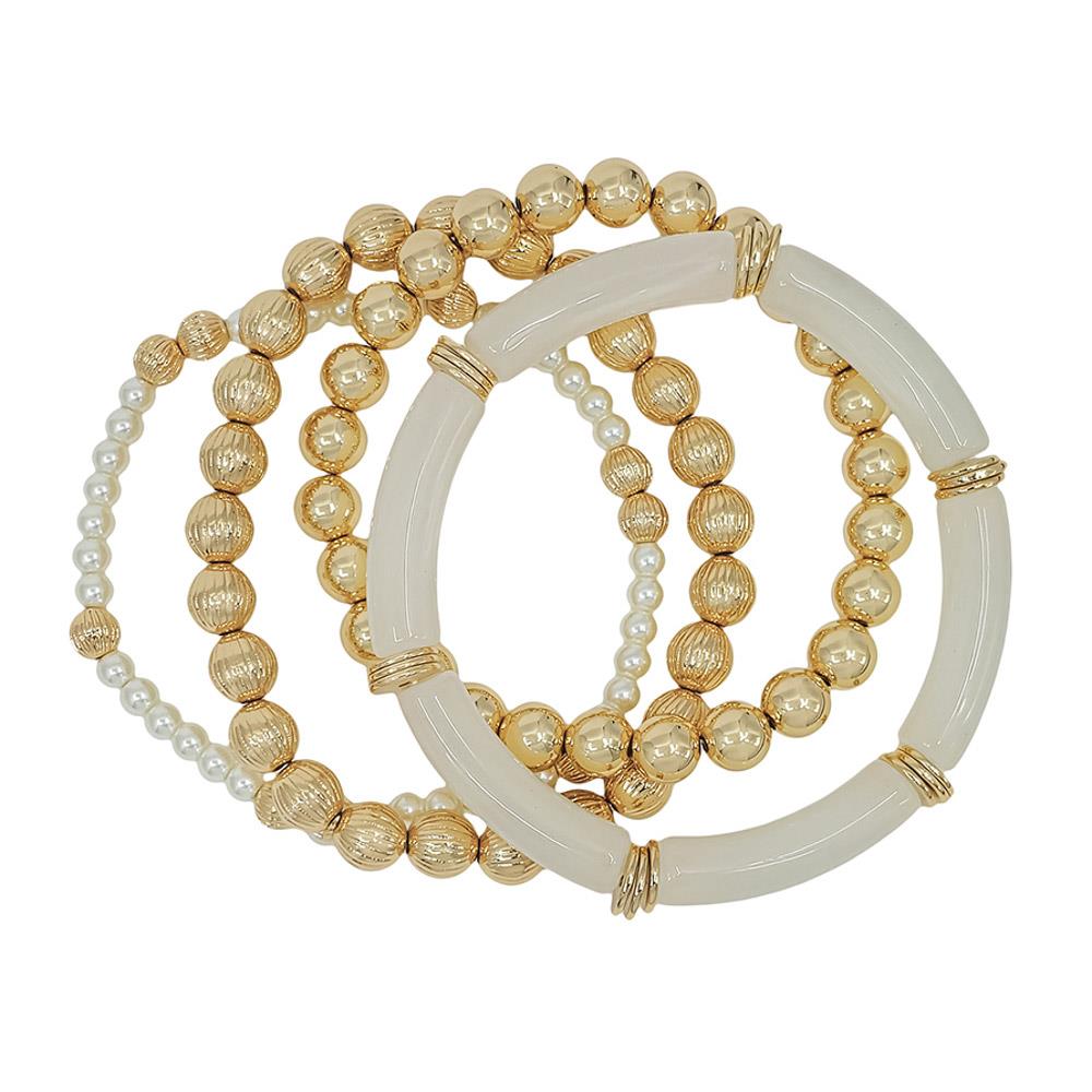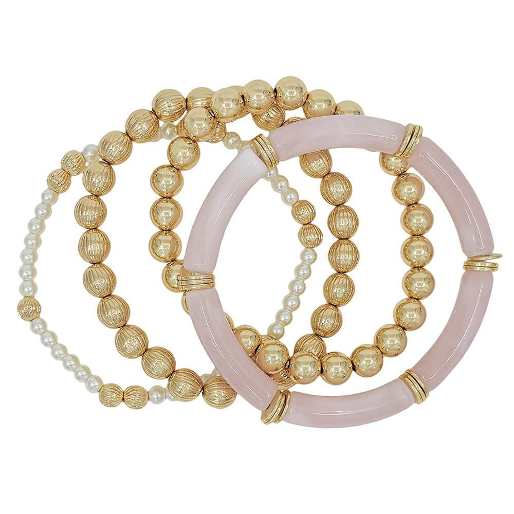 4 SET 8MM PIPE RESIN TEXTURED CCB 4MM PEARL ACCENT BRACELET