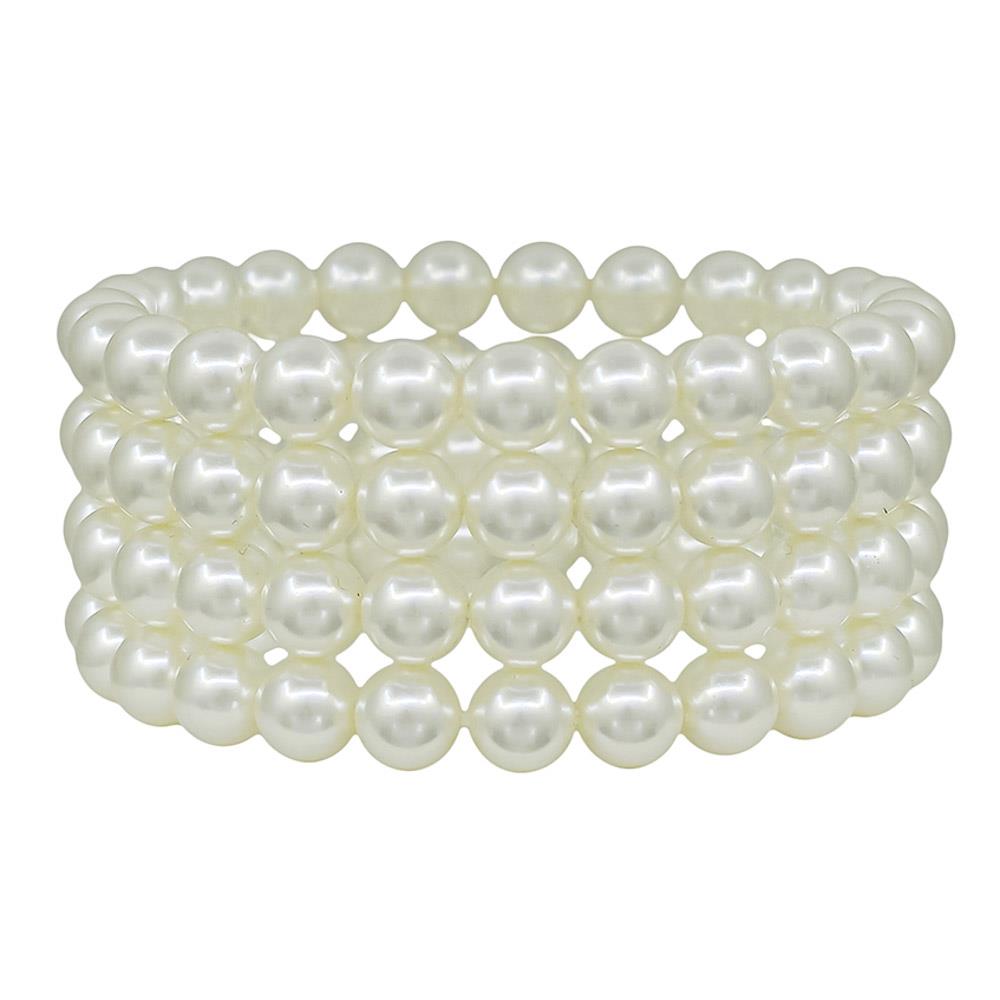 4 SET 8MM GLASS PEARL STRETCH BRACELET