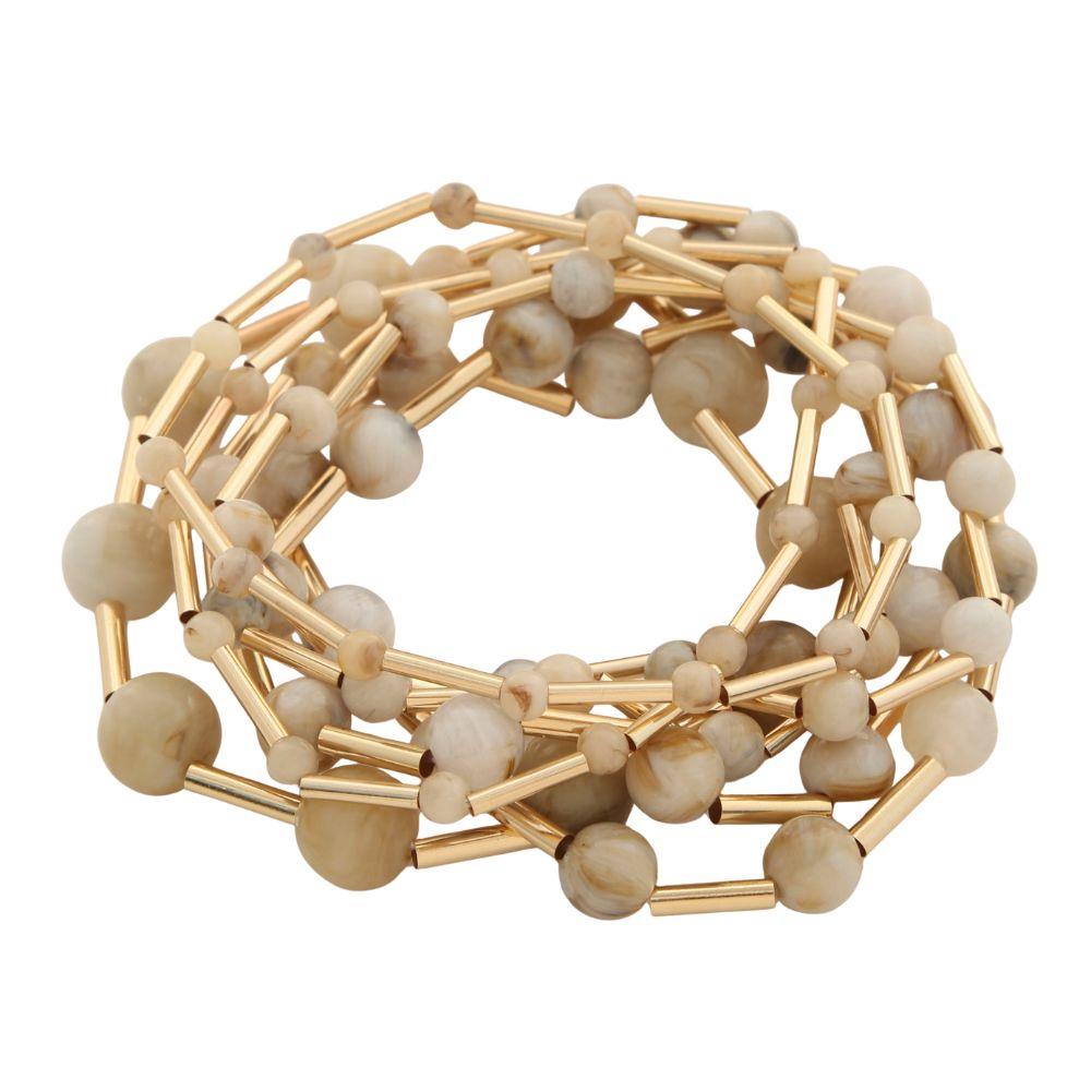 MARBLE RESIN METAL BEAD ELASTIC MULTI BRACELET SET