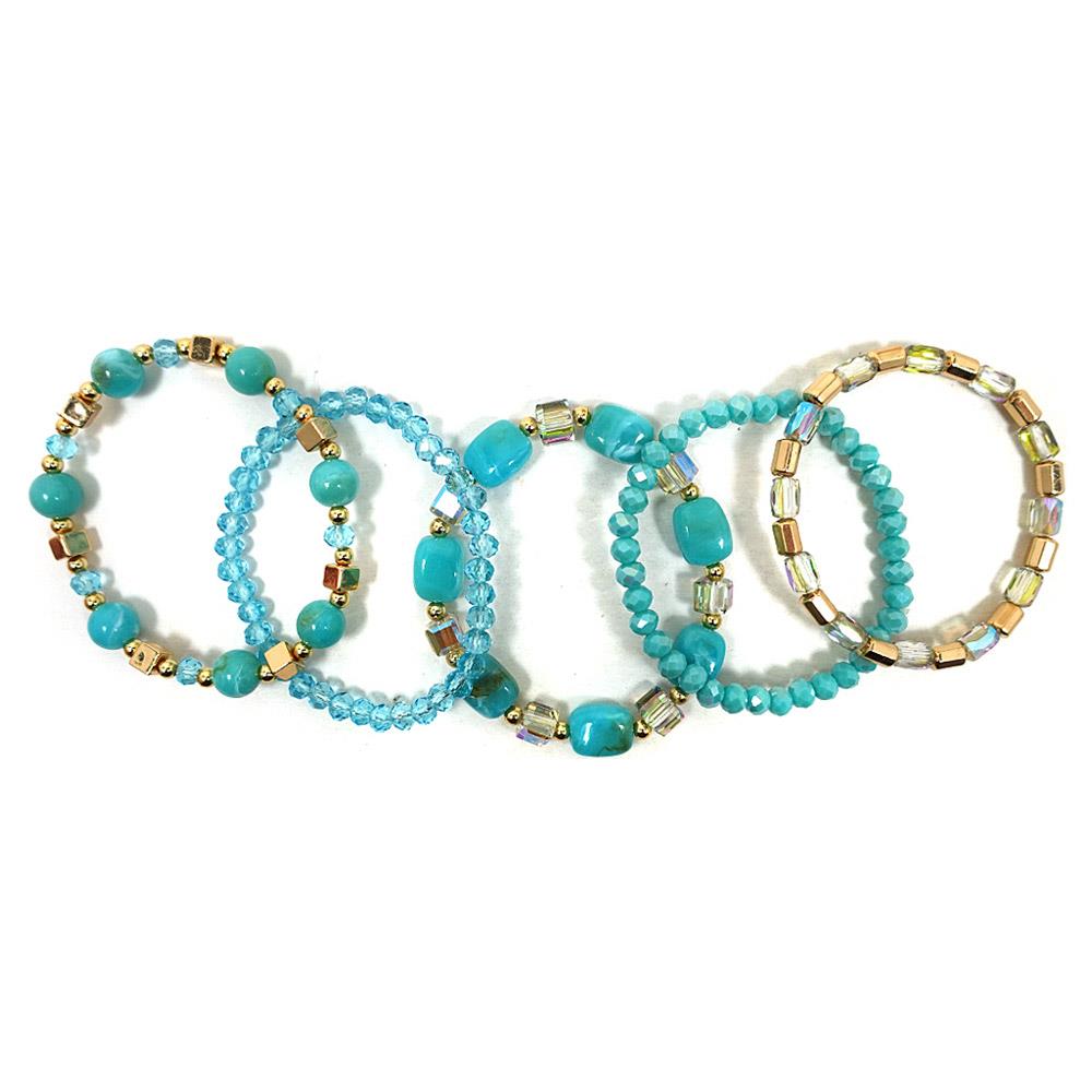 STONE METAL BEAD ELASTIC MULTI BRACELET SET