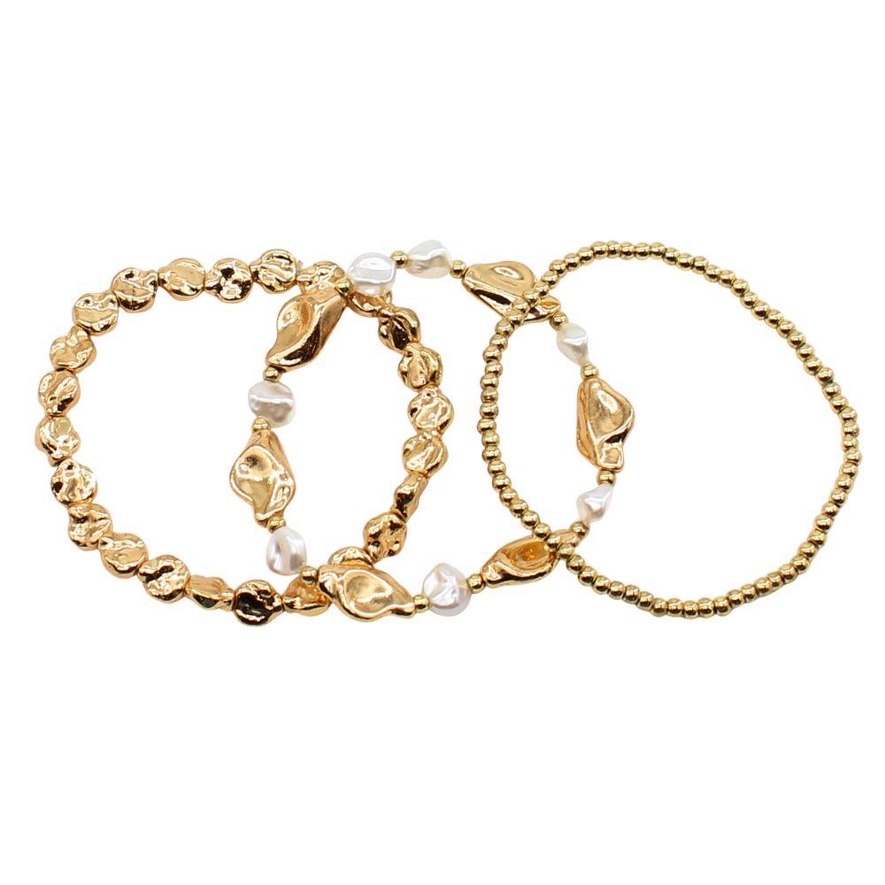 FAUX PEARL METAL BEAD ELASTIC MULTI BRACELET SET