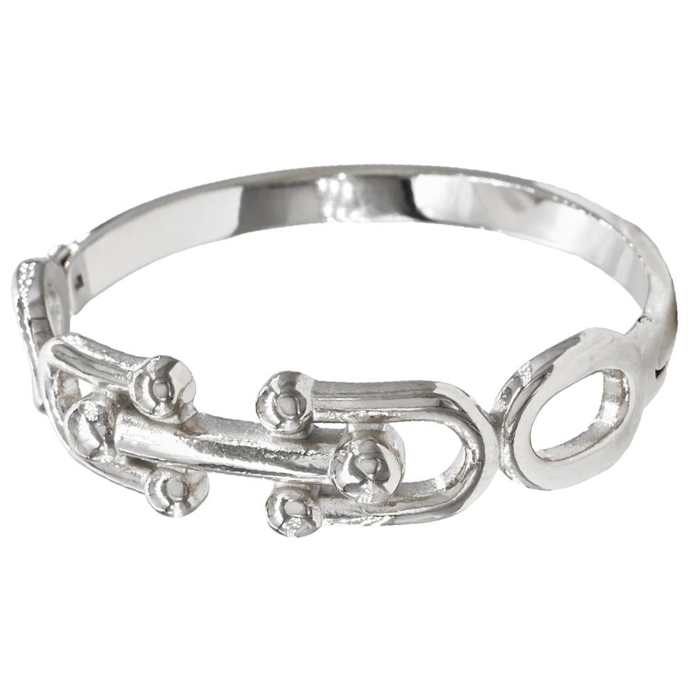 GEOMETRIC PATTERN STAINLESS STEEL HINGED BANGLE BRACELET