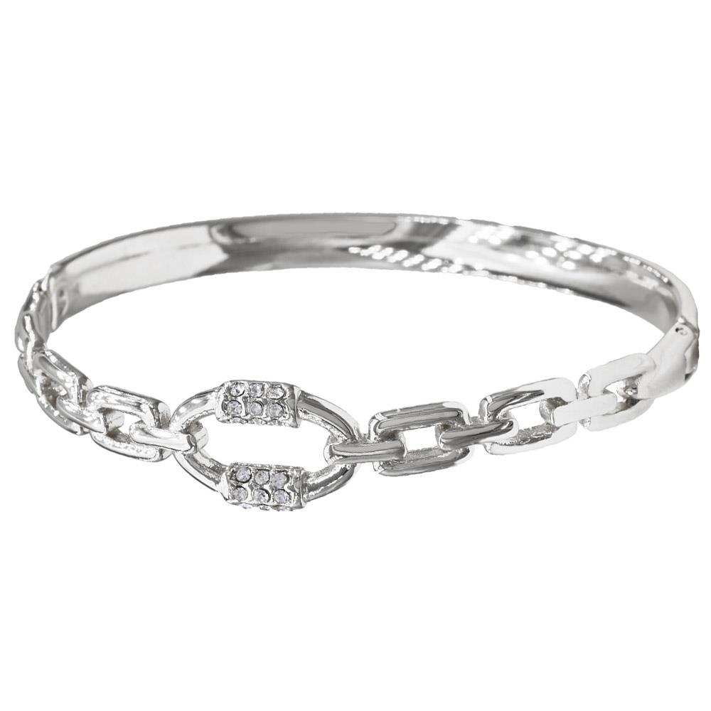 CZ OVAL LINK STAINLESS STEEL BANGLE BRACELET