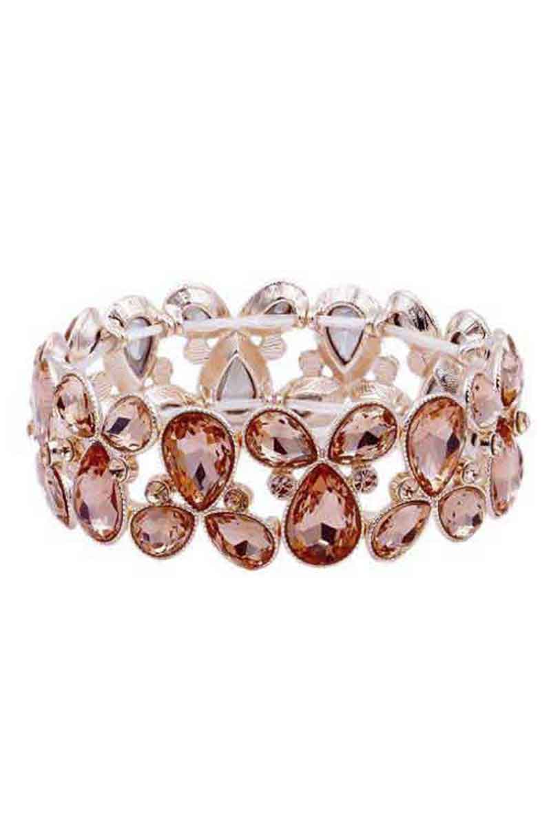 WIDE CRYSTAL STONE & RHINESTONE STRETCH BRACELET