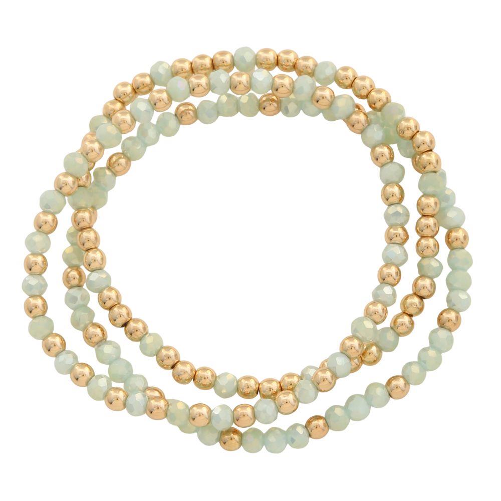 METAL TEXTURED BEAD FACETED BEAD STRETCH BRACELET SET