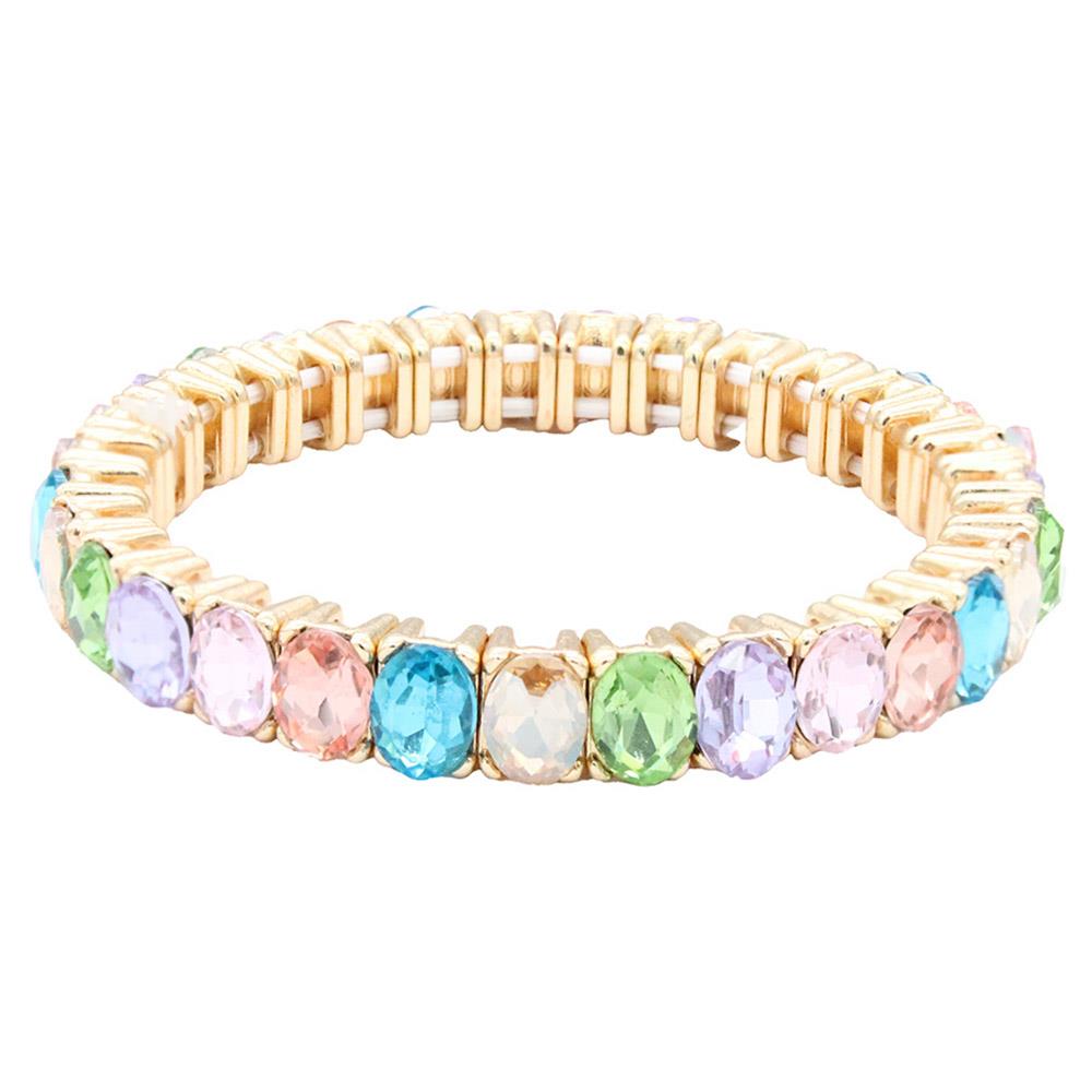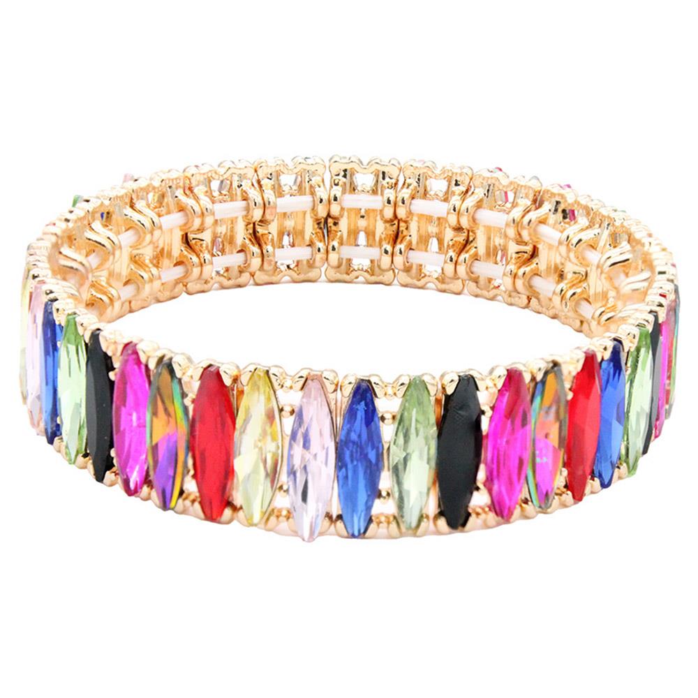 MIXED GEMSTONE BEADED WIDE STRETCH BRACELET