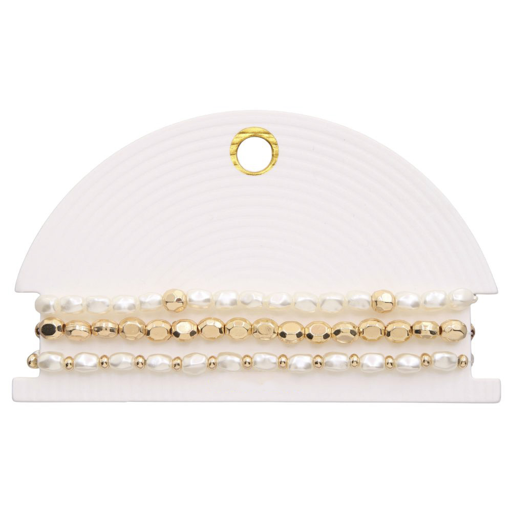 MULTI LAYERED ROUND PEARL METAL BEAD BRACELET SET