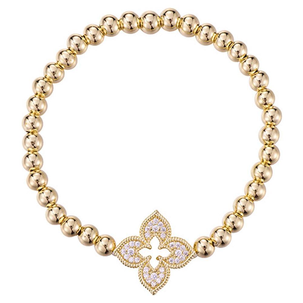 5MM BALL BEAD&CZ FLOWER STRETCH BRACELET