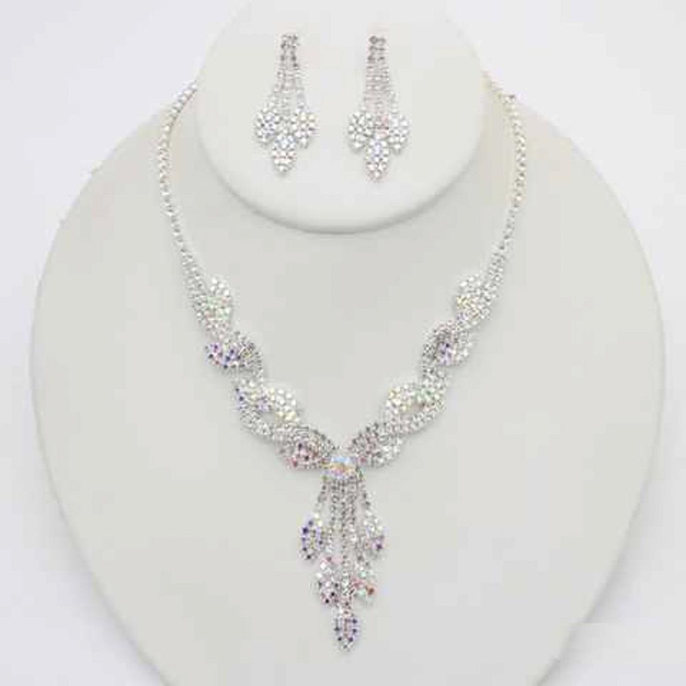 RHINESTONE CLASSIC DROP NECKLACE EARRING SET