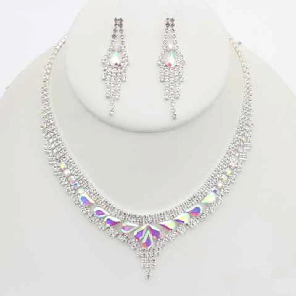 CRYSTAL TEARDROP RHINESTONE NECKLACE EARRING SET
