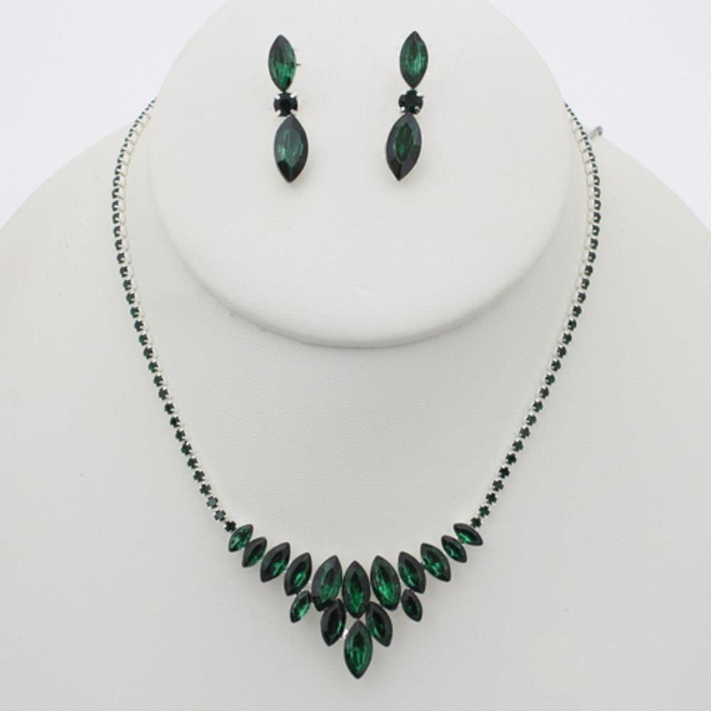 RHINESTONE MARQUISE LEAF 3 PC NECKLACE EARRING SET