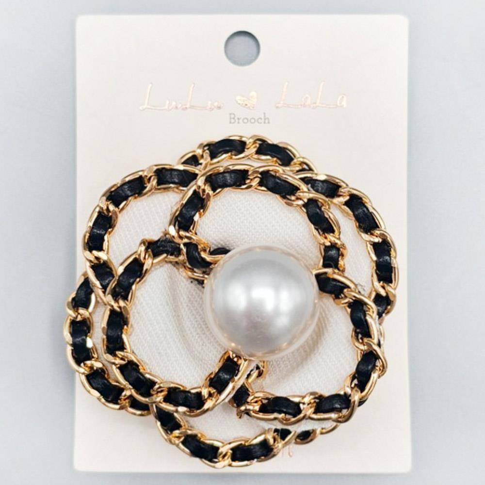 CHAIN FLOWER PEARL BROOCH