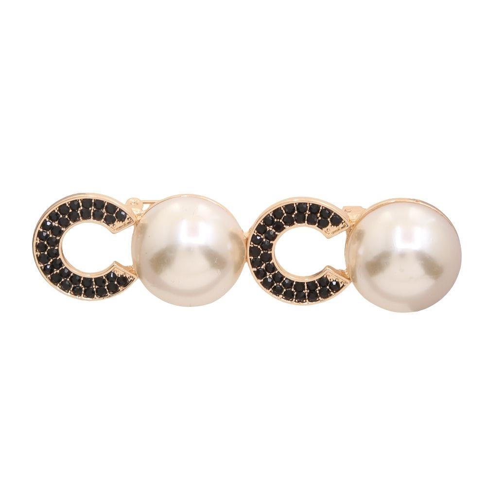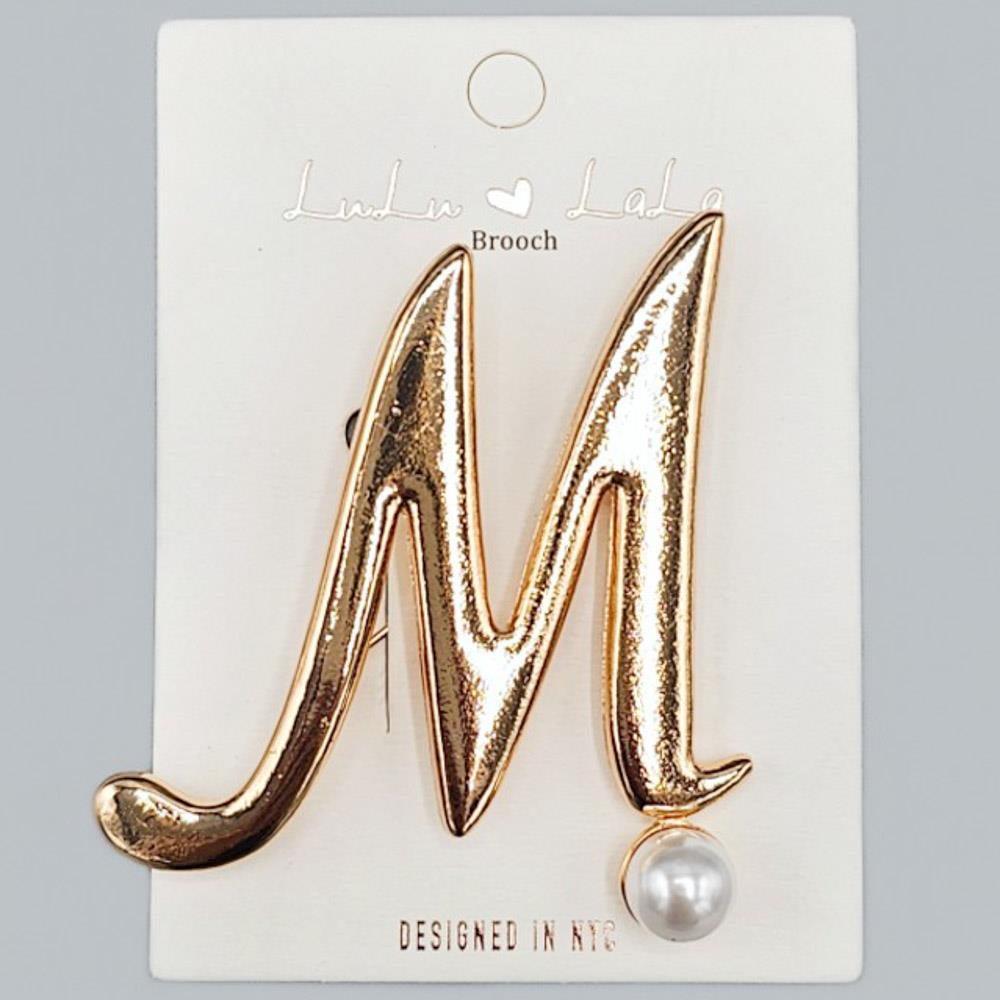 METAL RHINESTONE PEARL LETTER BROOCH PIN