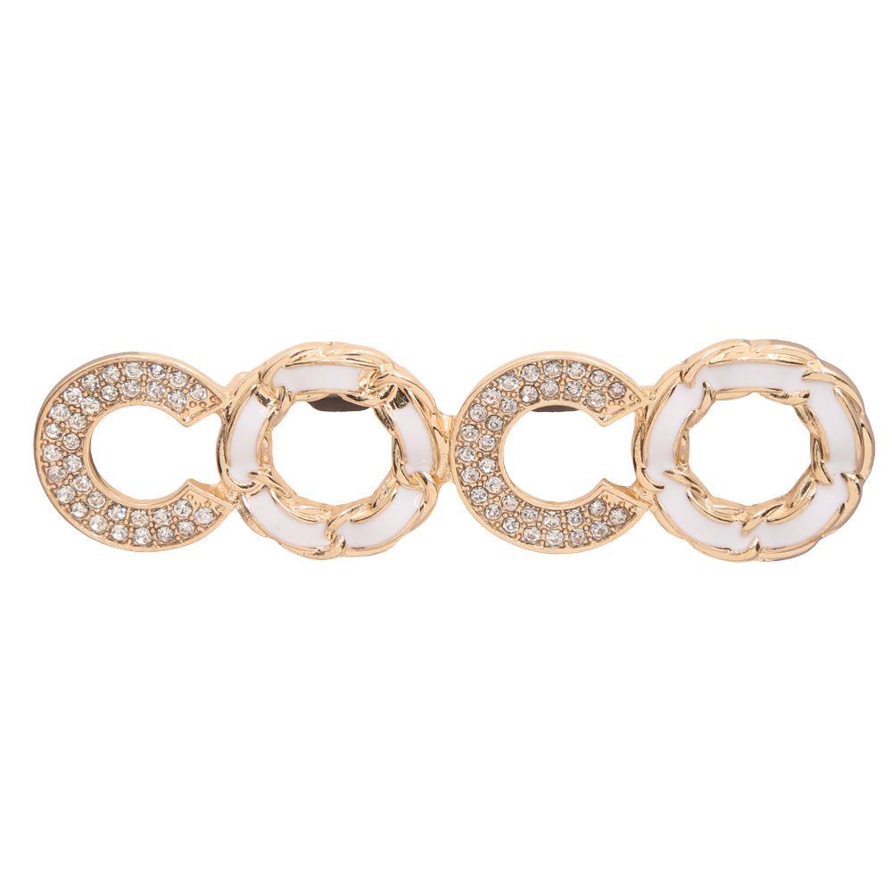 DOUBLE CIRCLE RHINESTONE METAL BROOCH