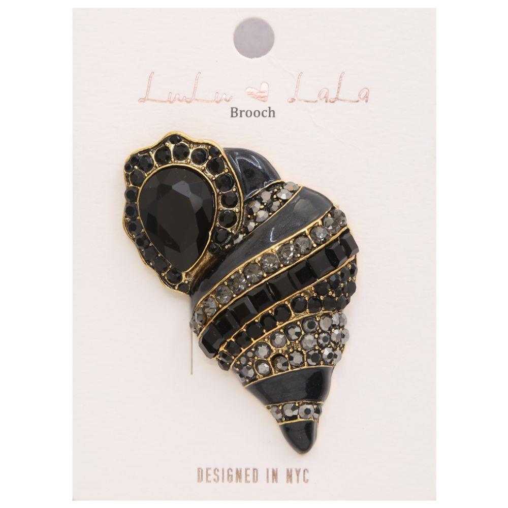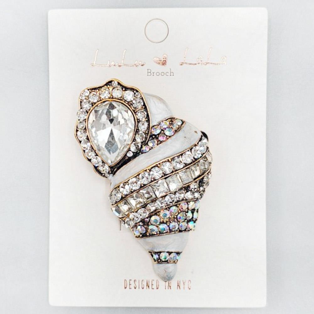 METAL RHINESTONE TEXTURED CONCH SHELL BROOCH PIN